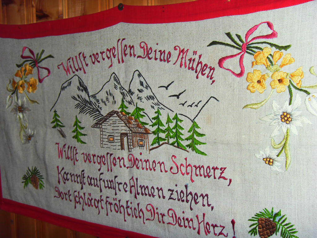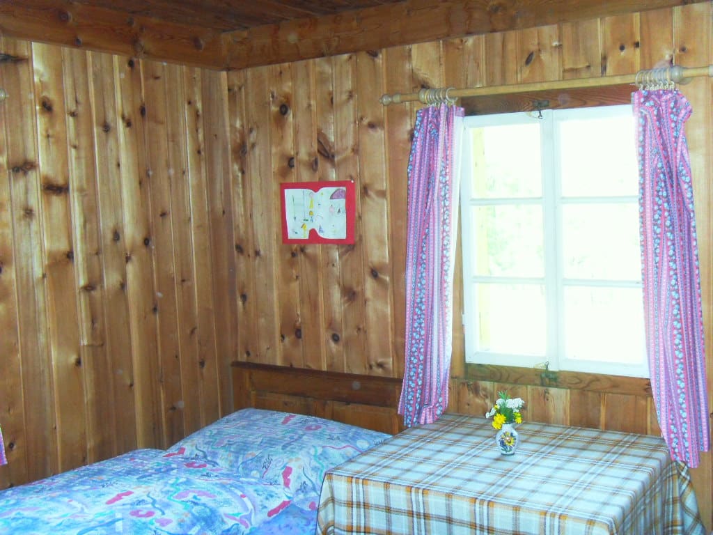 Über eine Treppe erreicht man drei Zweibett- und ein Einbettzimmer. Der Preis beträgt bis 2 Personen insgesamt € 60,- pro Tag für die Almhütte, jede weitere Person € 15,- pro Tag. Die Preise verstehen sich exklusive der Ortstaxe von € 2,15 pro Erwachsenen und Tag und Endreinigung einmalig € 65,-. Haustiere € 10,- pro Tag ohne Futter.