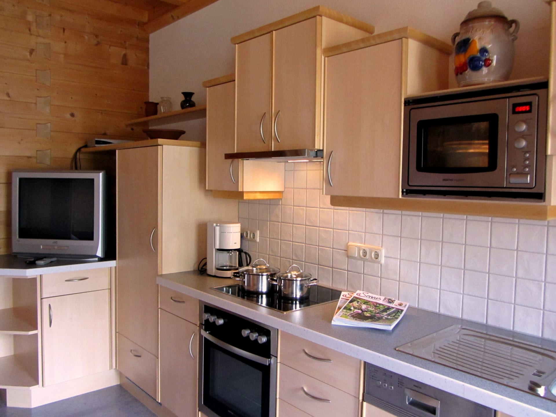 • Wohnküche/ Küchenausstattung: Cerankochfeld/Backrohr, Kühlschrank mit Gefrierfach, Geschirrspüler, Mikrowelle, Filterkaffeemaschine, Wasserkocher, Besteck,Eß/ Kochgeschirr;