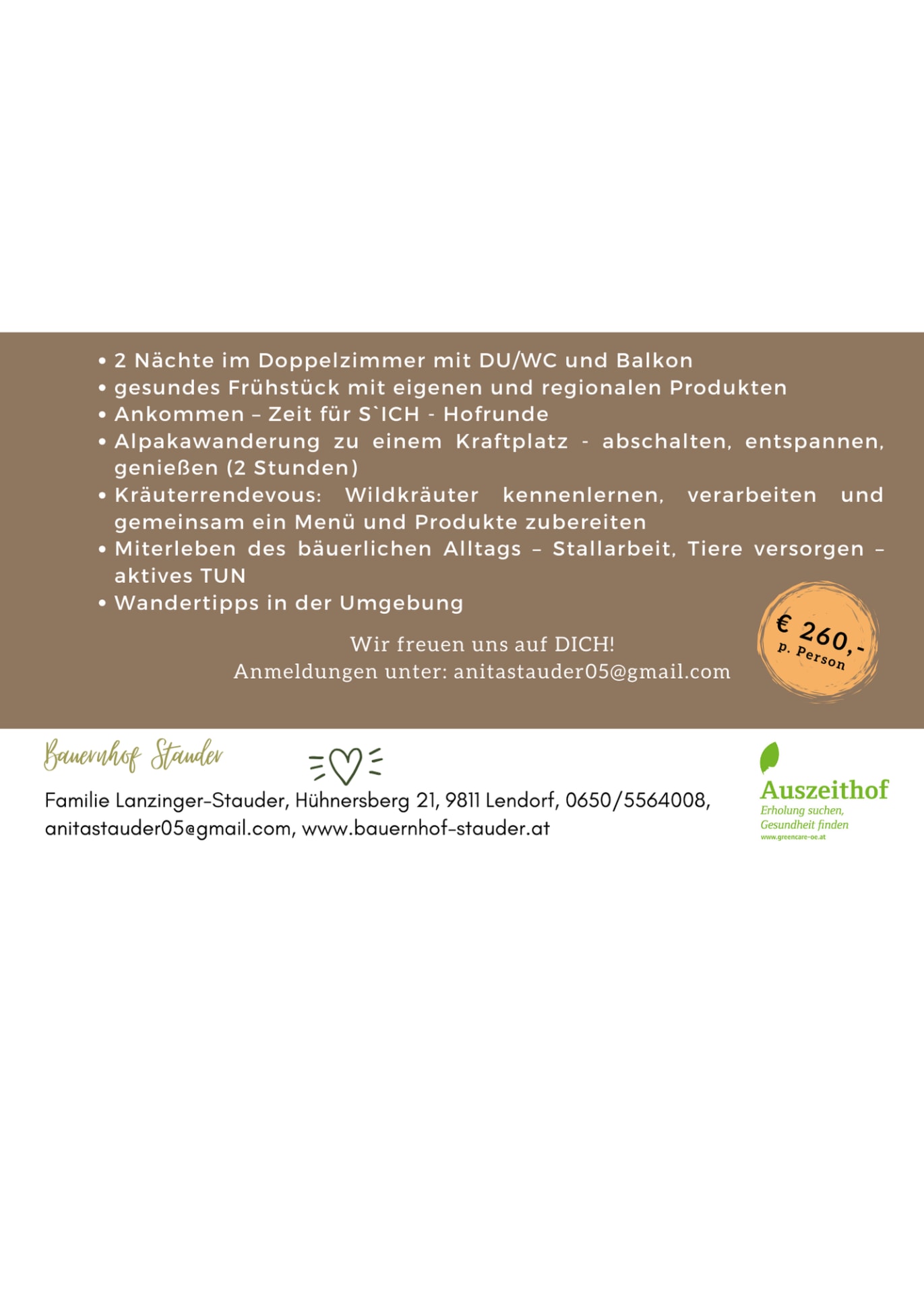 Wir bieten mehrmals wöchentlich Hofaktivitäten für unsere Gäste an: Grüne Kosmetik Workshop, Alpakawanderungen, Brot backen und vieles mehr.