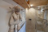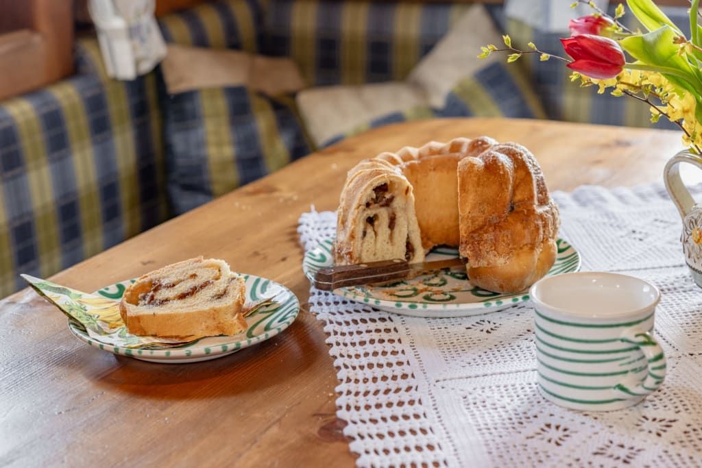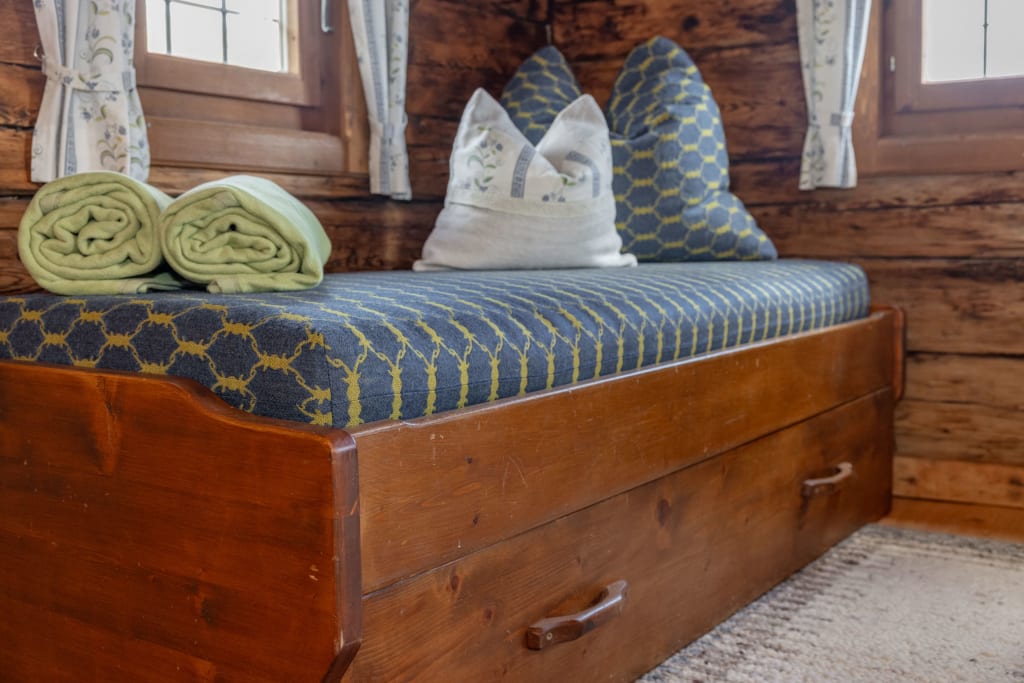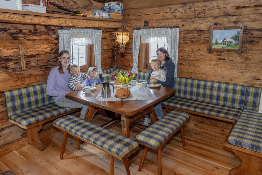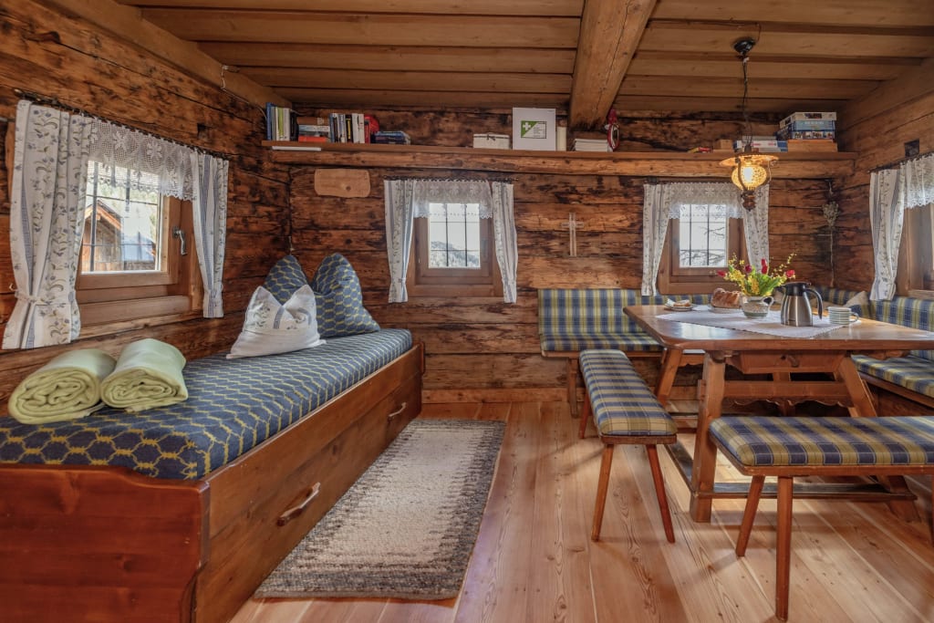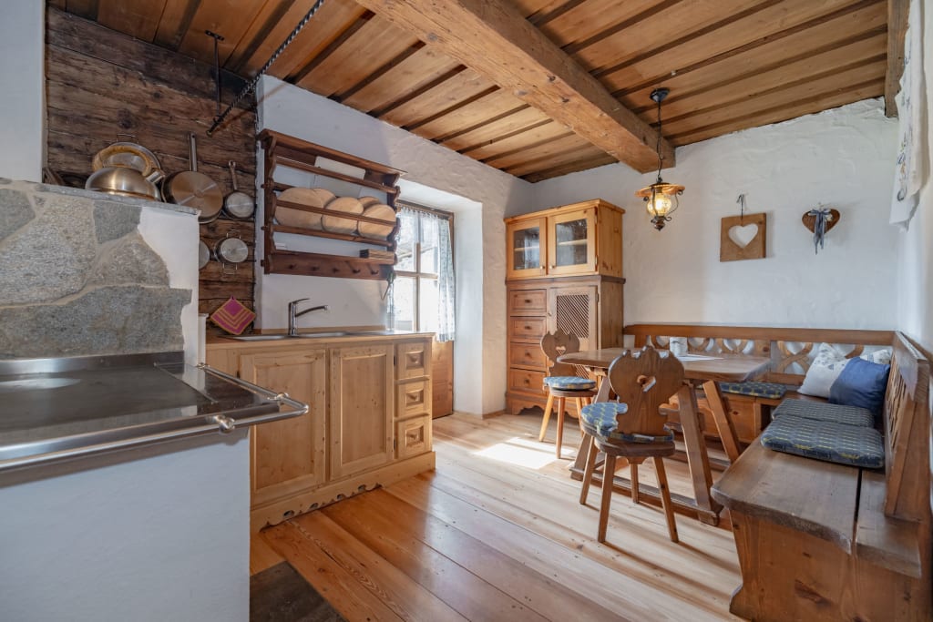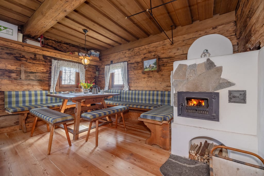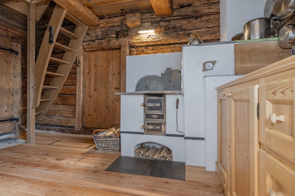 Drinnen sorgt der gemütliche Kachelofen für wohlige Wärme und lädt dazu ein, mit einem Glas Wein in der Hand in der Stube zu verweilen. In der urigen Küche kannst du auf dem traditionellen Holzherd wie in alten Zeiten kochen – einfach, ehrlich und richtig gut.