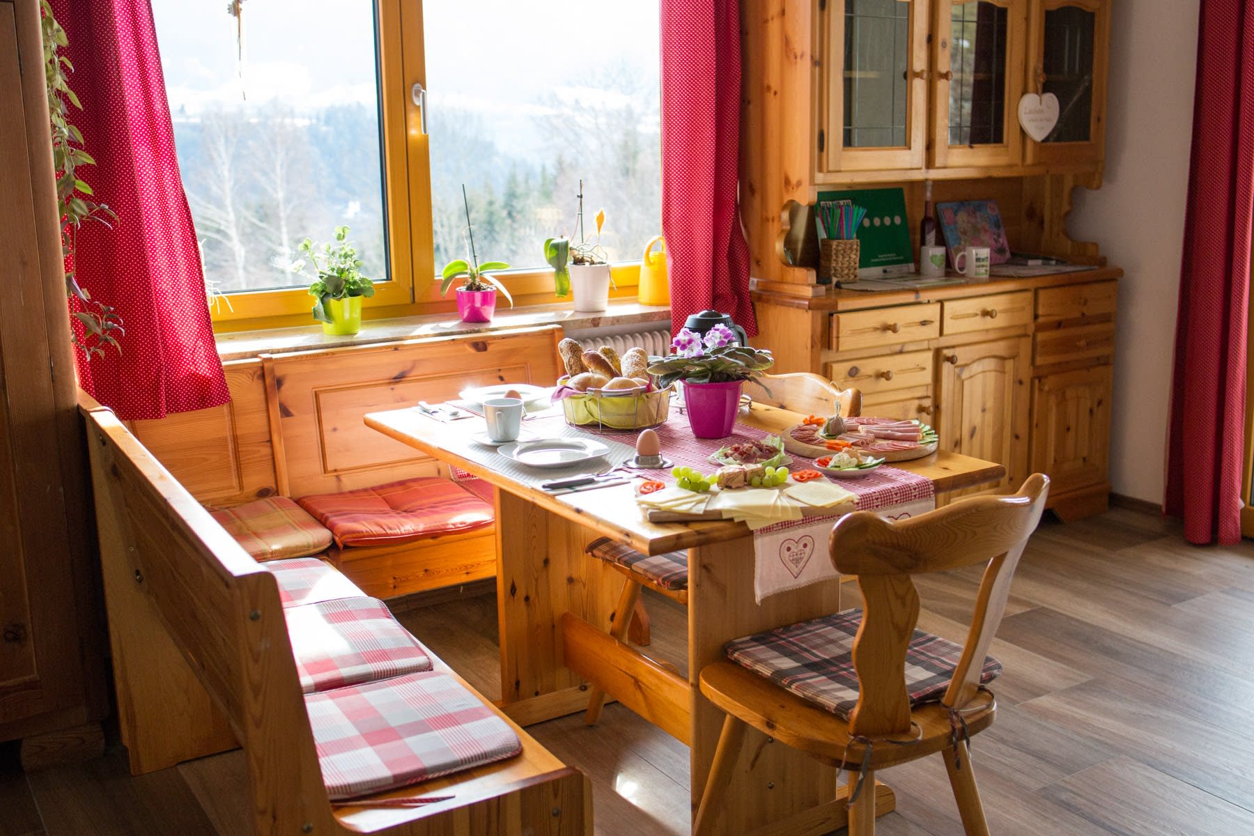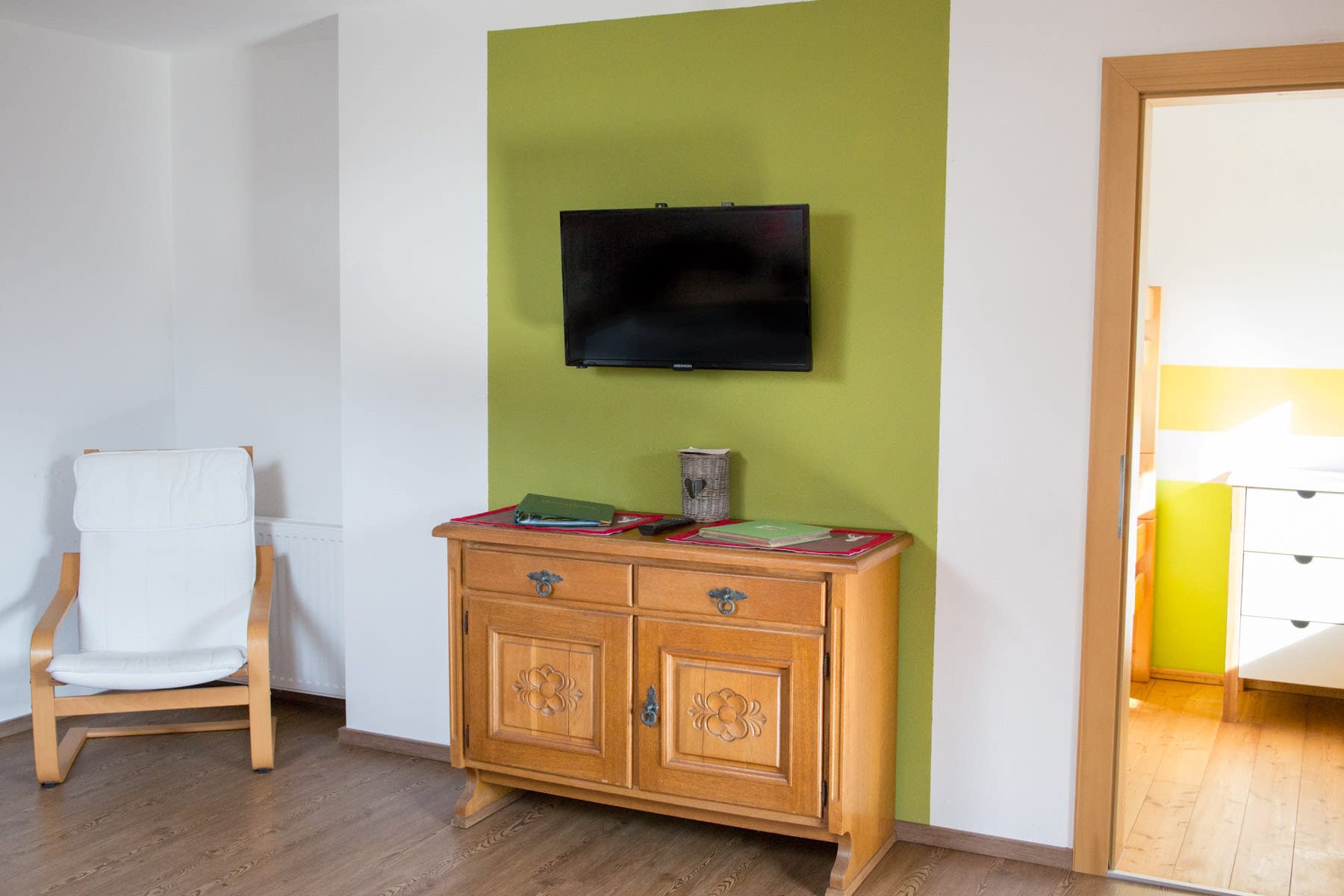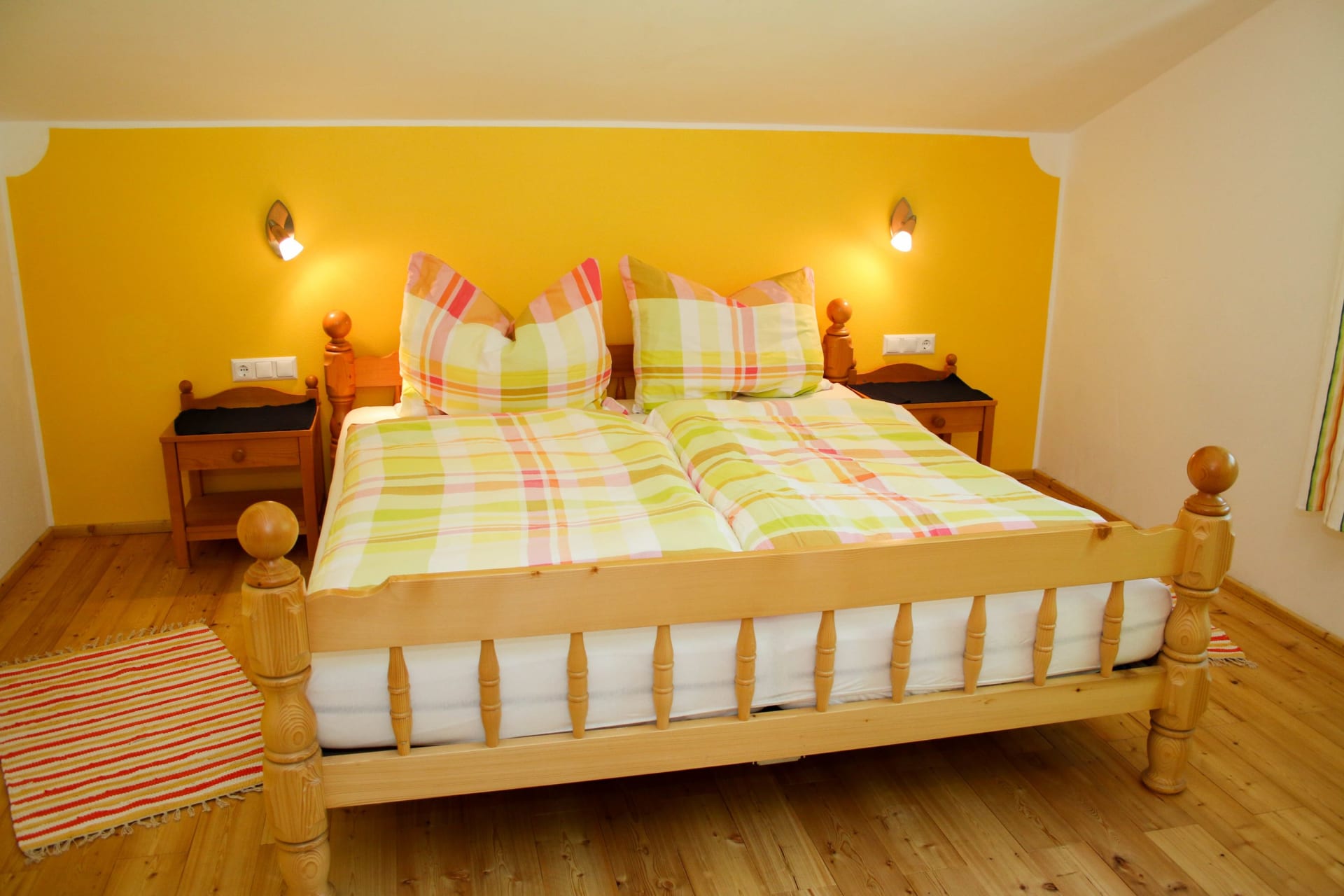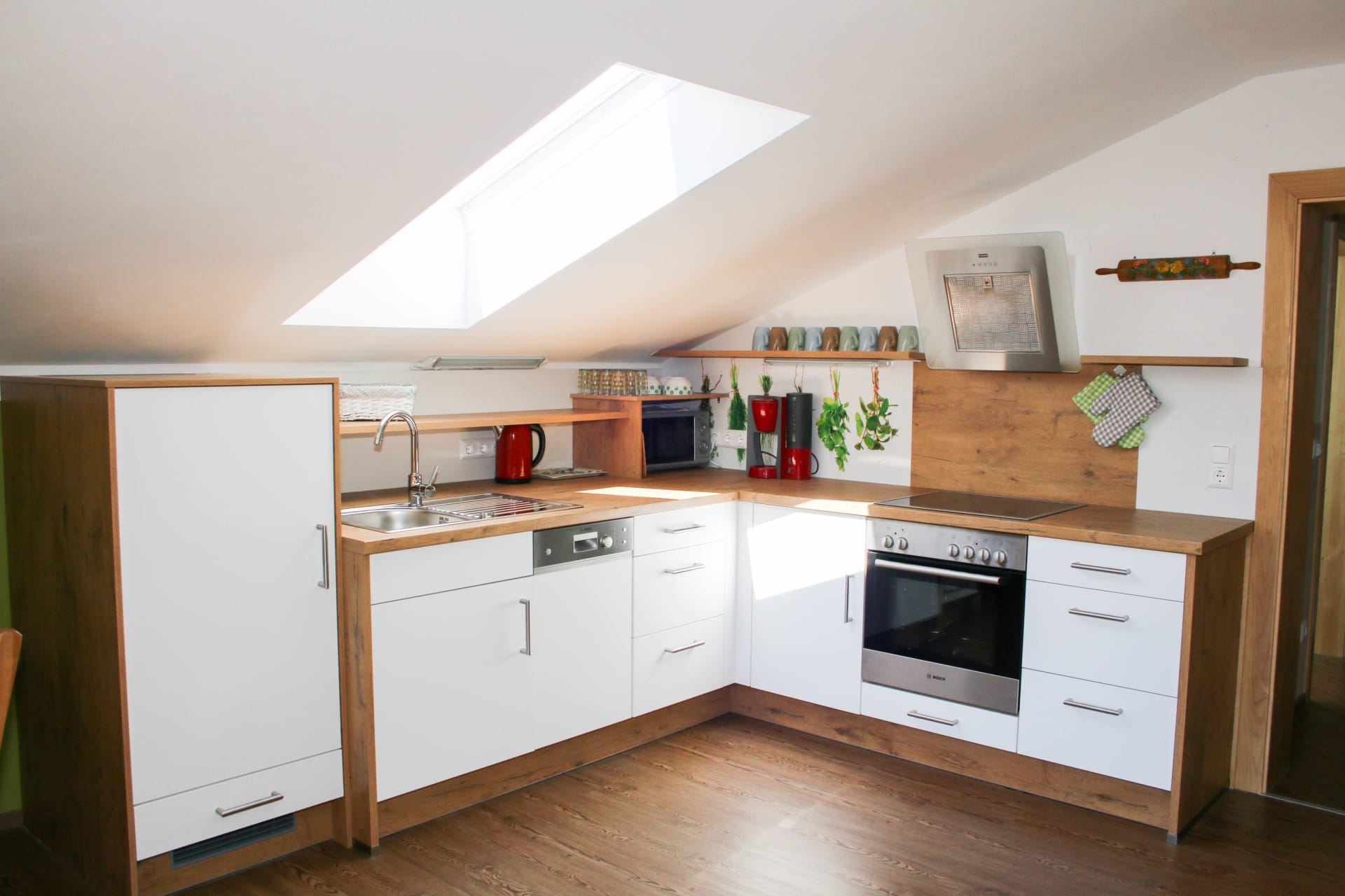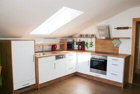 Wir bieten unsere 66 m² Ferienwohnung Edelweiß für bis zu 5 Personen mit 1 Schlafzimmer mit Doppelbett, 1 Kinderzimmer mit Stockbett, 1 Schlafzimmer mit 1 Einzelbett, Badezimmer, Dusche, WC, Waschmaschine, Fußbodenheizung, offener Wohnküche mit Mikrowelle, Geschirrspüler, Backofen, TV, WLAN .