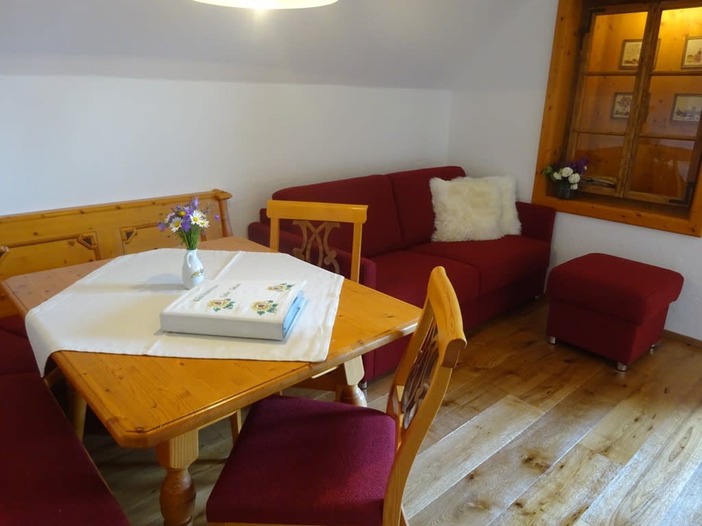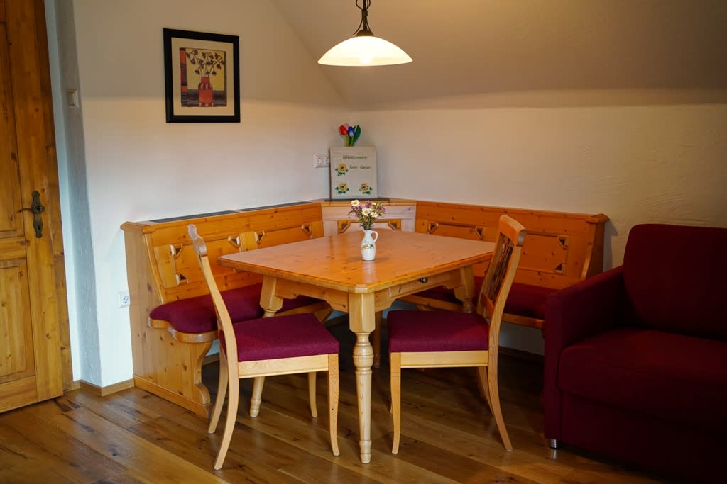 Wohnung 2 ist im Bauernhaus (60m²), hat 2 Schlafzimmer, Vorraum, Dusche, WC, eine gemütliche Wohnküche mit Balkon, Waschmaschine, Bettwäsche, Handtücher, Sat-TV, Radio, Geschirrspüler, Kaffeemaschine, Wasserkocher, Kinderbett, Hochstuhl, W-Lan,........ Kinderermäßigung!