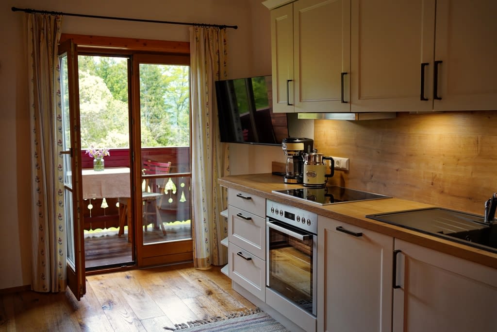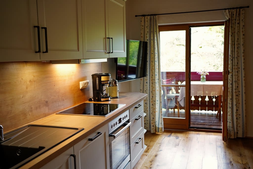 Wohnung 1 ist im Bauernhaus (60m²), hat 2 Schlafzimmer, Dusche, WC, Vorraum, eine gemütliche Wohnküche mit Balkon, Kinderbett, Hochstuhl, Waschmaschine, Bettwäsche, Handtücher, Sat-TV, Radio, Geschirrspüler, Kaffeemaschine, Wasserkocher, W-Lan, ........ Kinderermäßigung!