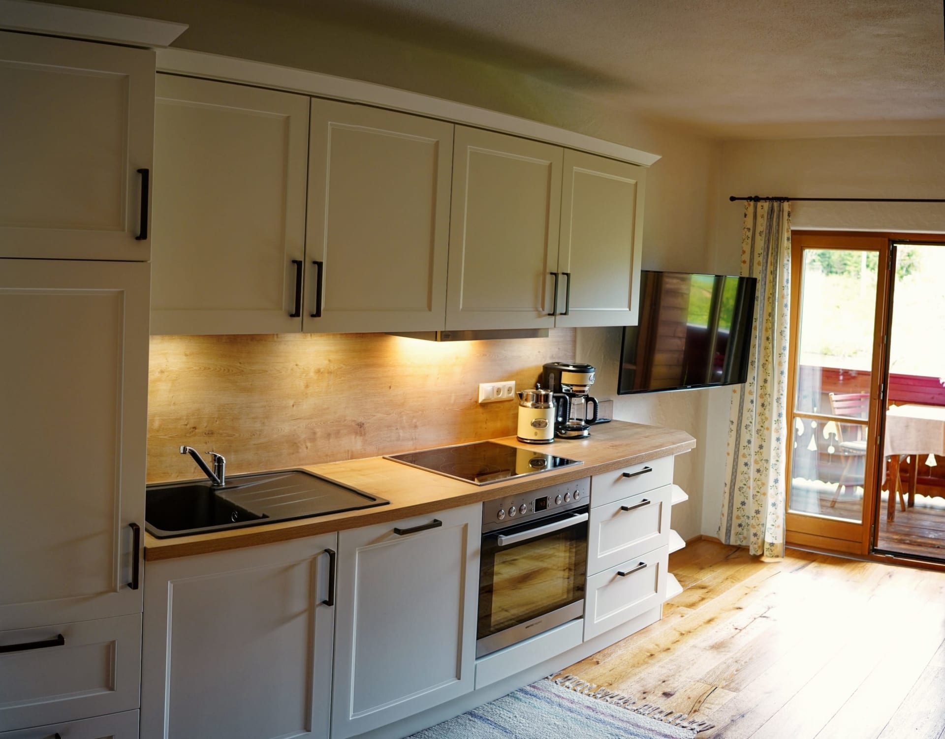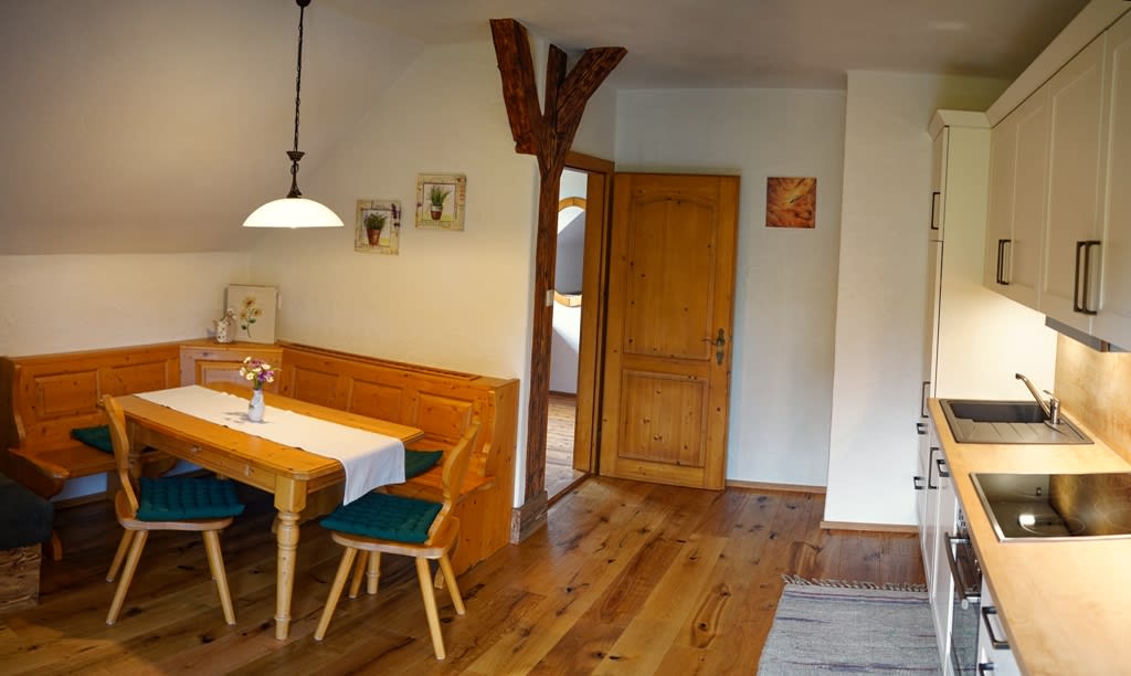 Unsere Ferienwohnungen, mit viel Liebe und natürlichen Materialien eingerichtet, strahlen Wärme und Behaglichkeit aus. In unserer großen Wohnung in der Alten Schmiede können Sie zusätzlich mit einem Holzofen heizen, die wohlige Wärme genießen und dem Knistern im Ofen lauschen während draußen vielleicht dicke Schneeflocken vom Himmel fallen.