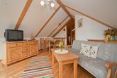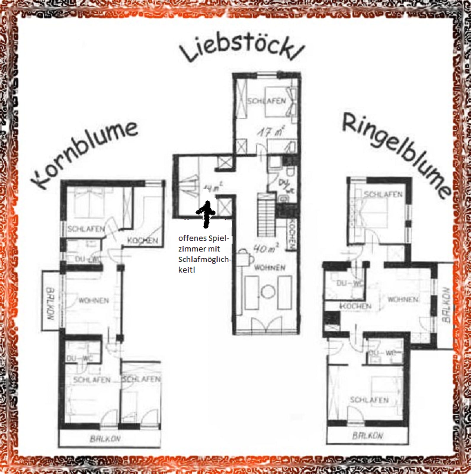 Unsere Liebstöckel ist eine wunderschöne, individuell ins Dachgeschoss eingebaute Ferienwohnung. Sie ist liebevoll im Landhausstiel eingericht und kompett ausgestattet. Das Elternschlafzimmer bietet Platz für 2 Erwachsene und 2 Kinder. Zusätzlich-für die Kinder einfach toll- das kuschelige Kinderzimmer, ausgestattet mit 1,90 m Betten, mit Dachschräge. Zwar hat es keine Tür, aber durch die räumliche Aufteilung der FEWO wird der Schlaf nicht gestört!
