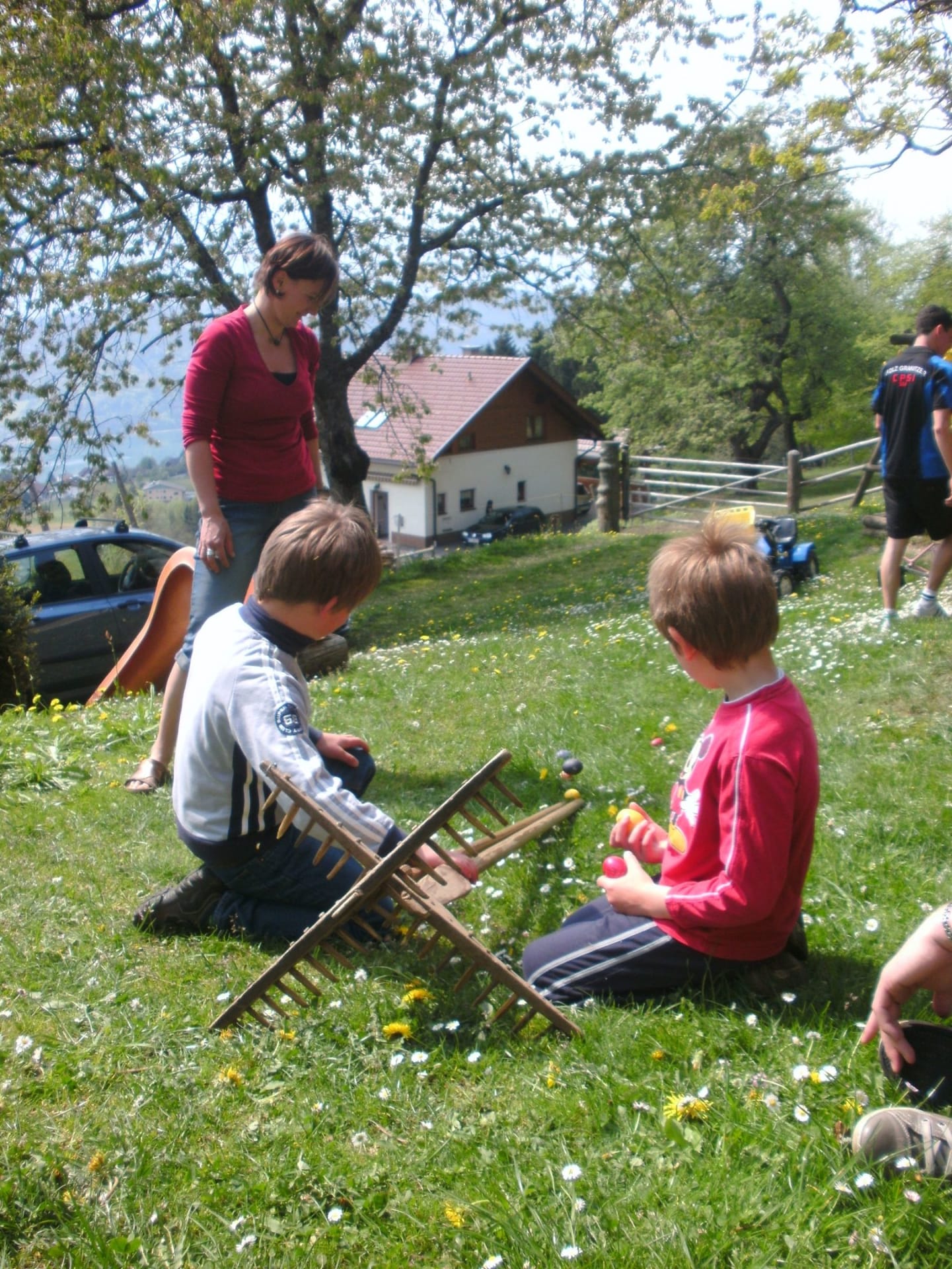 Für die Kinder ist bei uns im Dorf ein Eislaufplatz wo man sich so richtig austoben kann, und Abends, wird dann Eisstock geschossen, ein sehr beliebtes Winterspiel für Groß und Klein. Noch nie gespielt? Der Bauer zeigt Euch gerne wie´s geht!