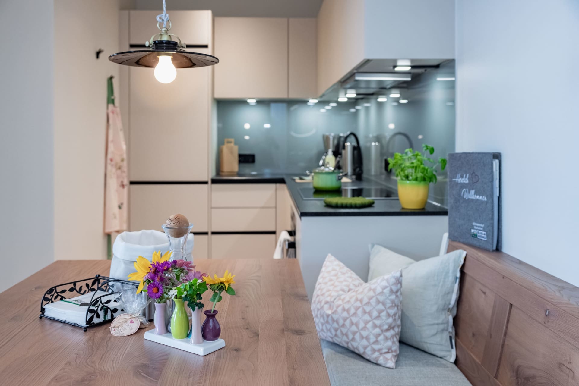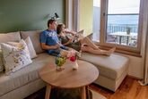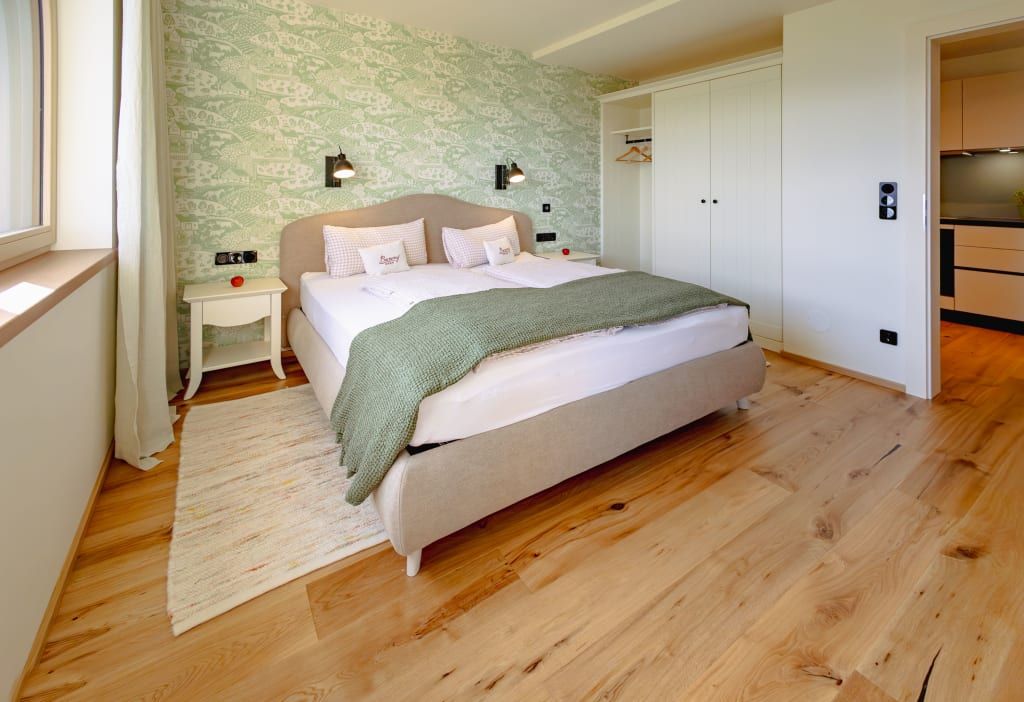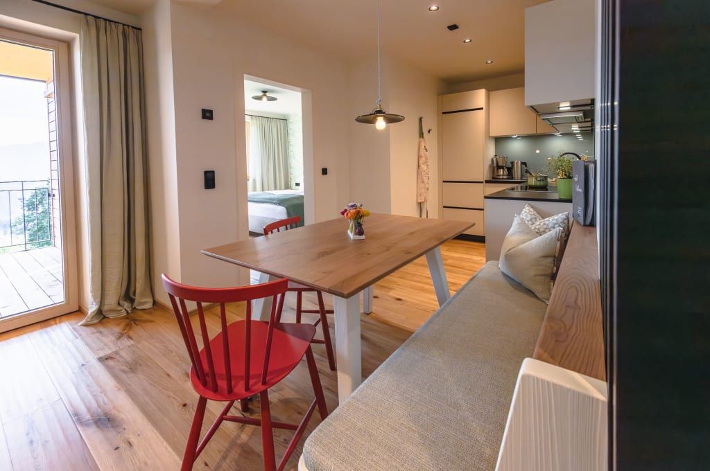 Freut euch auf eure Auszeit in unserer neuen Berg-See-Suite! Dieses lichtdurchflutete Zweiraumappartement im ersten Stock bietet auf 41m² eine hochwertige Ausstattung mit edlen Vollholzmöbeln und Echtholzböden. Das separate Schlafzimmer mit feiner Leinenbettwäsche und die helle Wohnküche mit zusätzlicher Schlafcouch sorgen für ein großzügiges Raumkonzept. Genießt den atemberaubenden Panoramablick auf den See und die Berge von eurem 10m² großen überdachten, südseitigen Balkon. Zur Ausstattung gehören Sat-TV, ein modernes Badezimmer mit geräumiger Dusche und WLAN. Der Preis beinhaltet die Millstätter-Inclusive-Card, die euch den kostenlosen Zugang zu Strandbädern, Mautstraßen und weiteren Angeboten der Region ermöglicht.