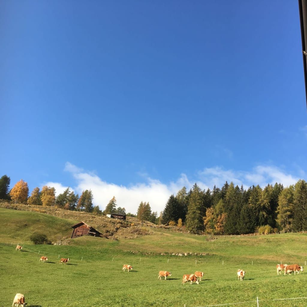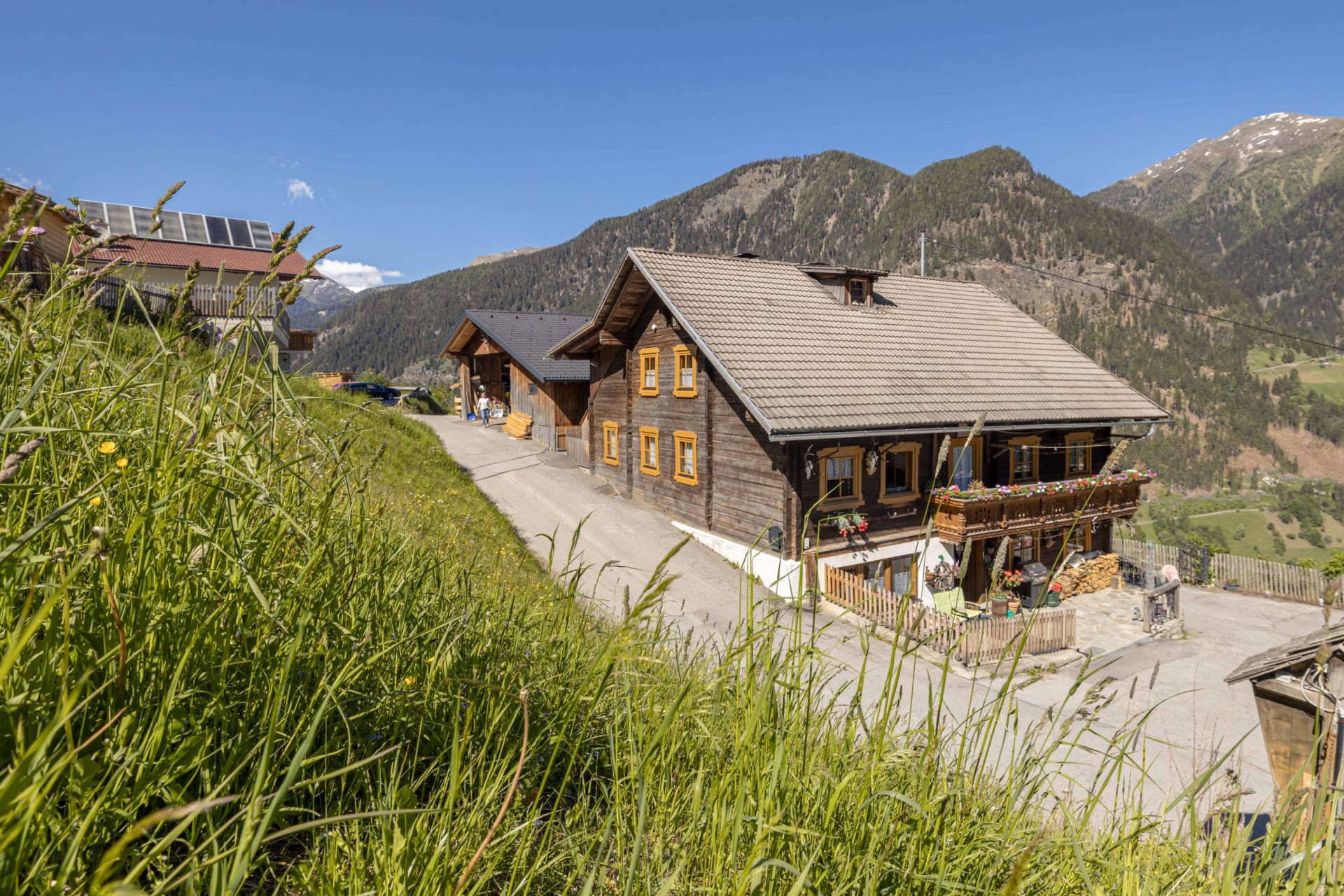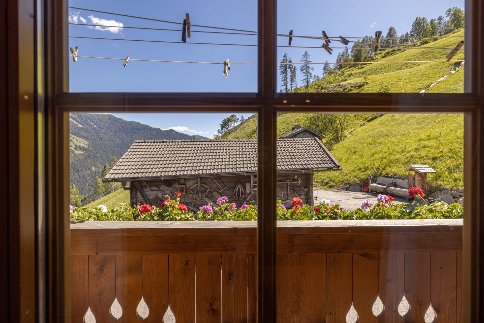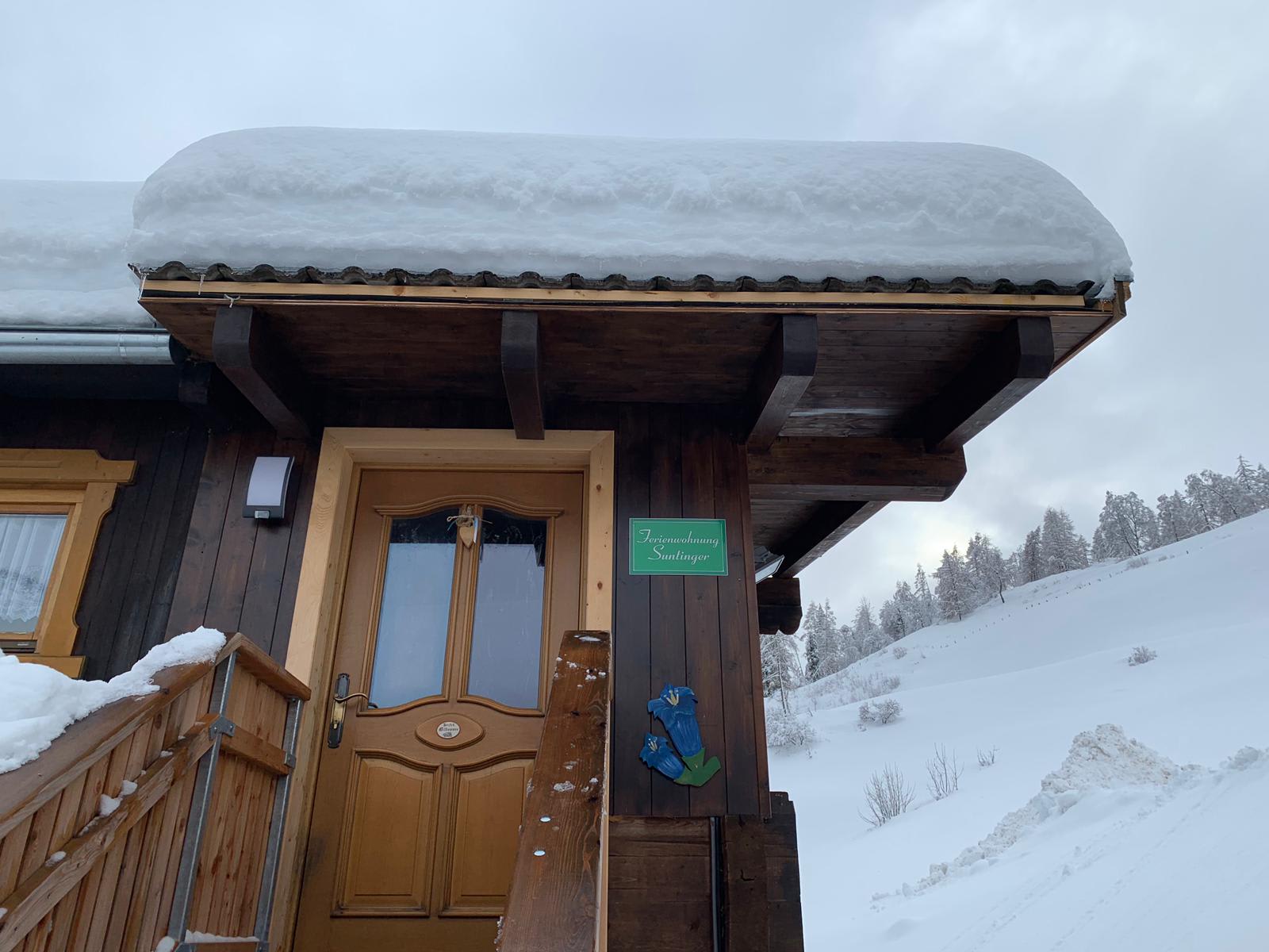 Im Winter ist es bei uns besonders schön! Auf dem Holzbankerl am kleinen Balkon trinkst du deinen Kaffee und genießt die sanften, wärmeden Strahlen der zarten Wintersonne. Du blickst von 1250m hinunter auf die Ortschaft Mörtschach. Hoch über dem Tal liegt unser Bergbauernhof.