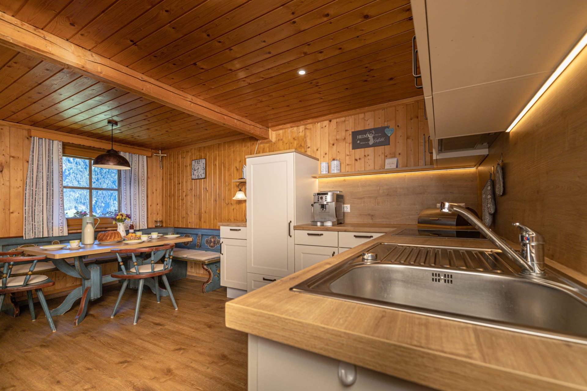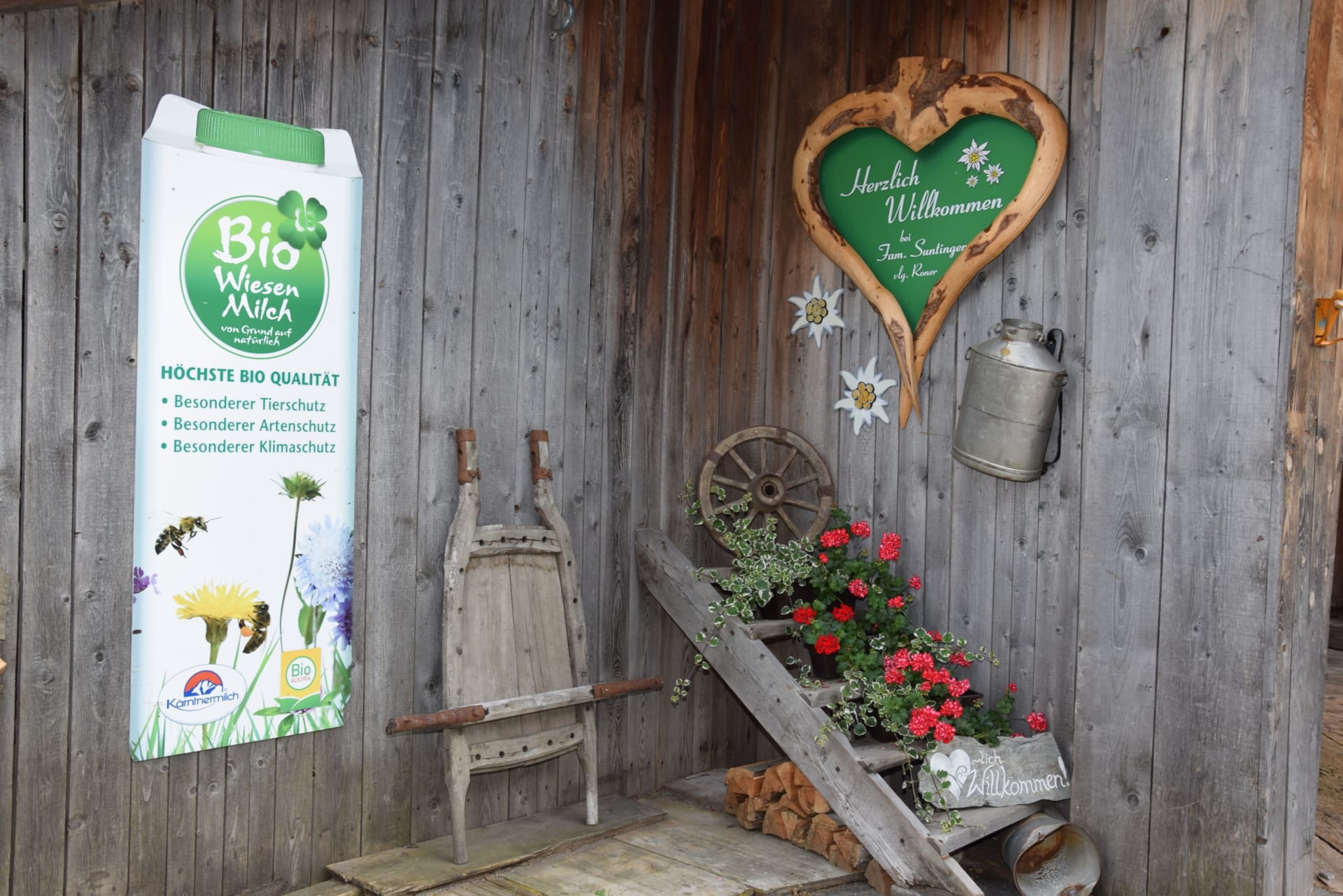 Die Ferienwohnung Suntinger ist liebevoll im alten Bauernhaus errichtet worden. Ein handgemalter Spruch auf den Trägern des Hauses aus dem Jahre 1935 zeigt, dass die Bauersleut hier ehemals zufrieden gewohnt haben. Heute bietet die Wohnung jeglichen Komfort. Moderne Küche und Sanitäreinrichtung, sowie drei bequeme und geräumige Schlafzimmer. Eine sechsköpfige Familie findet auf 120 m² viel Freiraum.