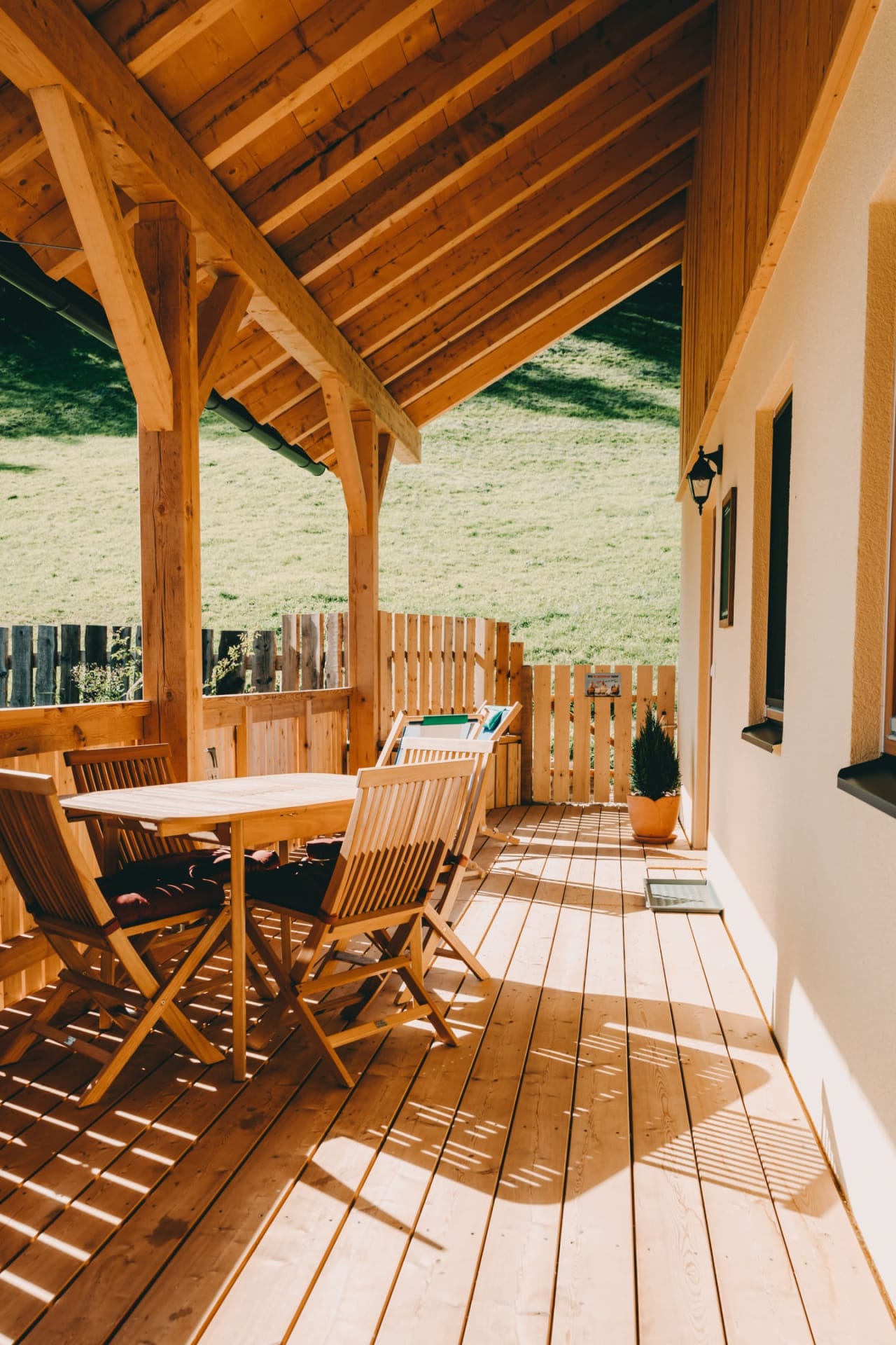 Die Ferienwohnung befindet sich im 2021 neu errichteten Holzgebäude oberhalb des Stalles, angrenzend an die Scheune. Die einzigen Nachbarn sind die Stallbewohner, die Tiere ringsum in der Natur und natürlich die Schotthoffamilie, die im alten Bauernhaus gegenüber wohnt. Schlafen in sanft duftenden Zirbenbetten, gemütliches Beisammensein in der geräumigen Wohnküche mit Holzofen, der Blick auf die weidenden Schafe ringsum oder den Sonnenuntergang auf der Terrasse erleben: ein Urlaub hier bringt Ruhe und Erholung.