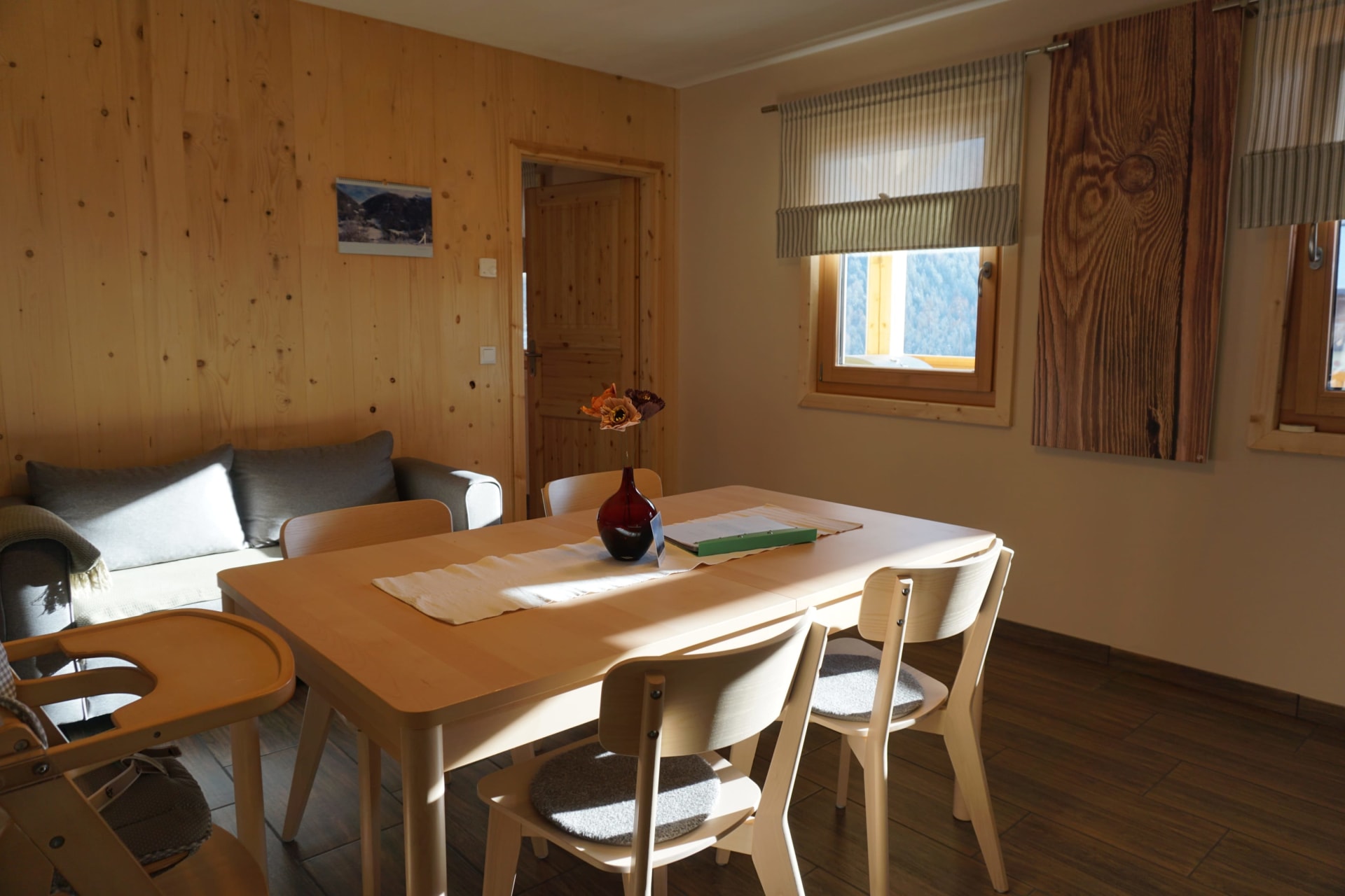 Im neu errichteten landwirtschaftlichen Holzgebäude lebt es sich sehr komfortabel: die voll ausgestattete Wohnung macht es bis zu vier Personen möglich, einen ganz besonderen Urlaub in Mitten der Natur zu erleben. Mit viel Liebe und Sinn für Praktisches (Waschmaschine, Spülmaschine,...) ist die Ferienwohnung der perfekte Ort für Menschen, die ganz natürlich und einfach leben möchten, ohne auf den kleinen Luxus verzichten zu müssen.