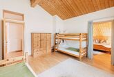• ein zweites Schlafzimmer mit Stockbett und Einzelbett