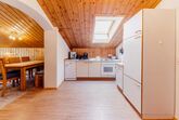 Sie finden Vollholzmöbel, selbst verlegten Holzboden, Geschirrspüler, Waschmaschine, Kaffeevollautomat, Backofen, Kühlschrank mit Gefrierfach.