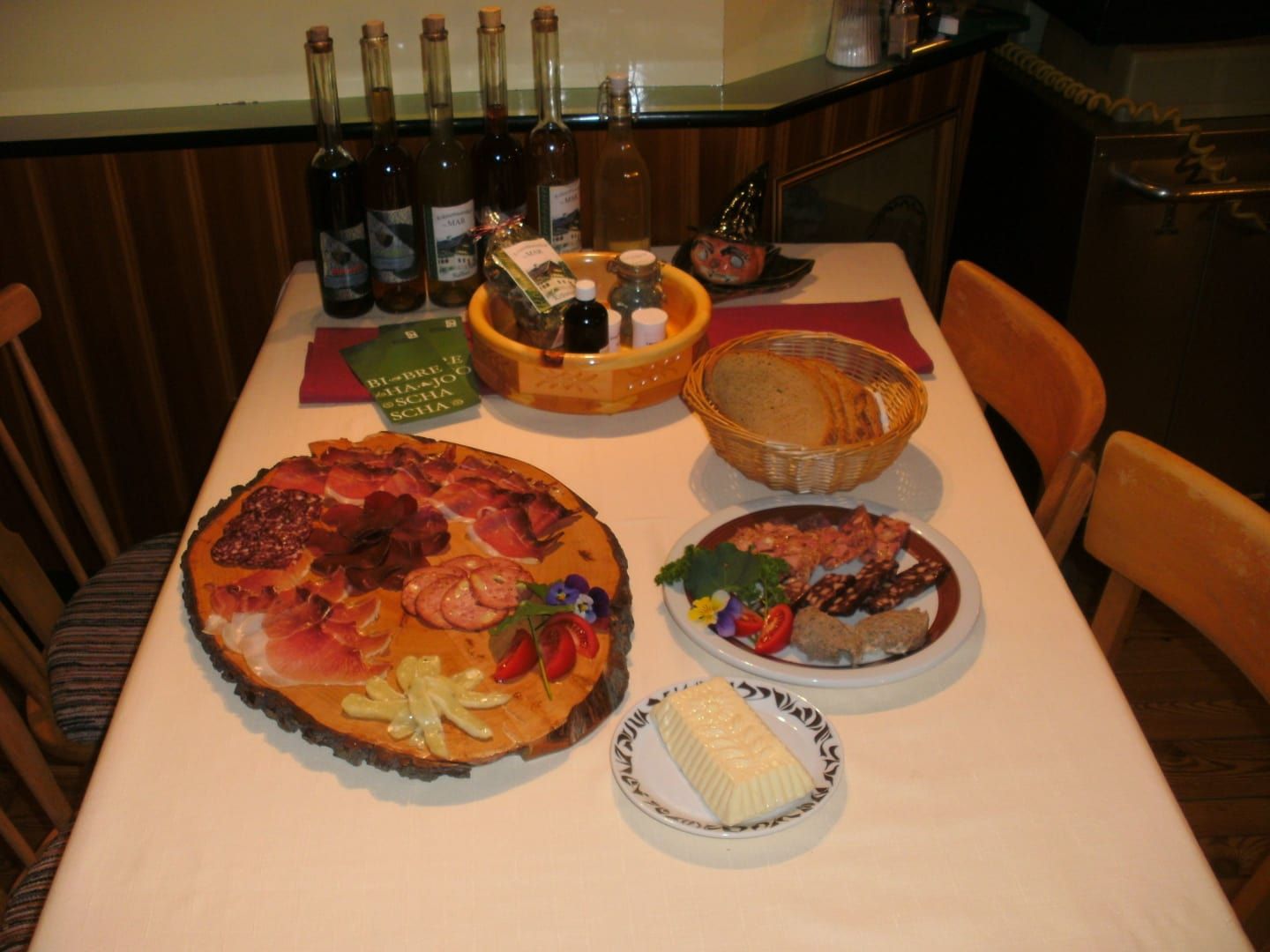 Gemütlicher Wohnkomfort mit Vollholzmöbel. Das Appartement besteht aus Kochnische mit 2 Kochplatten, Kühlschrank mit Gefrierfach, Kaffeemaschine, Wasserkocher, Toaster, Essplatz und Ausziehcouch.