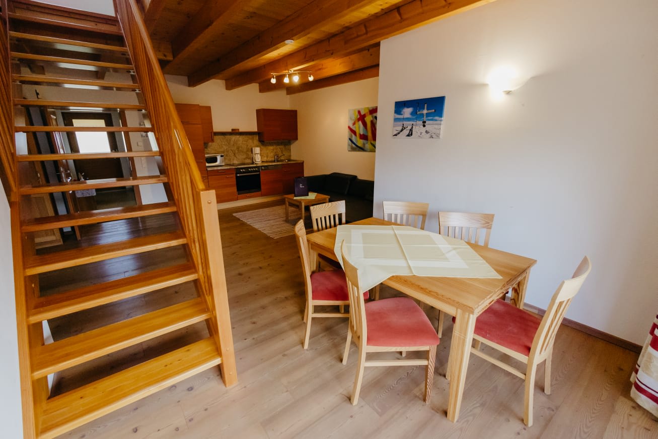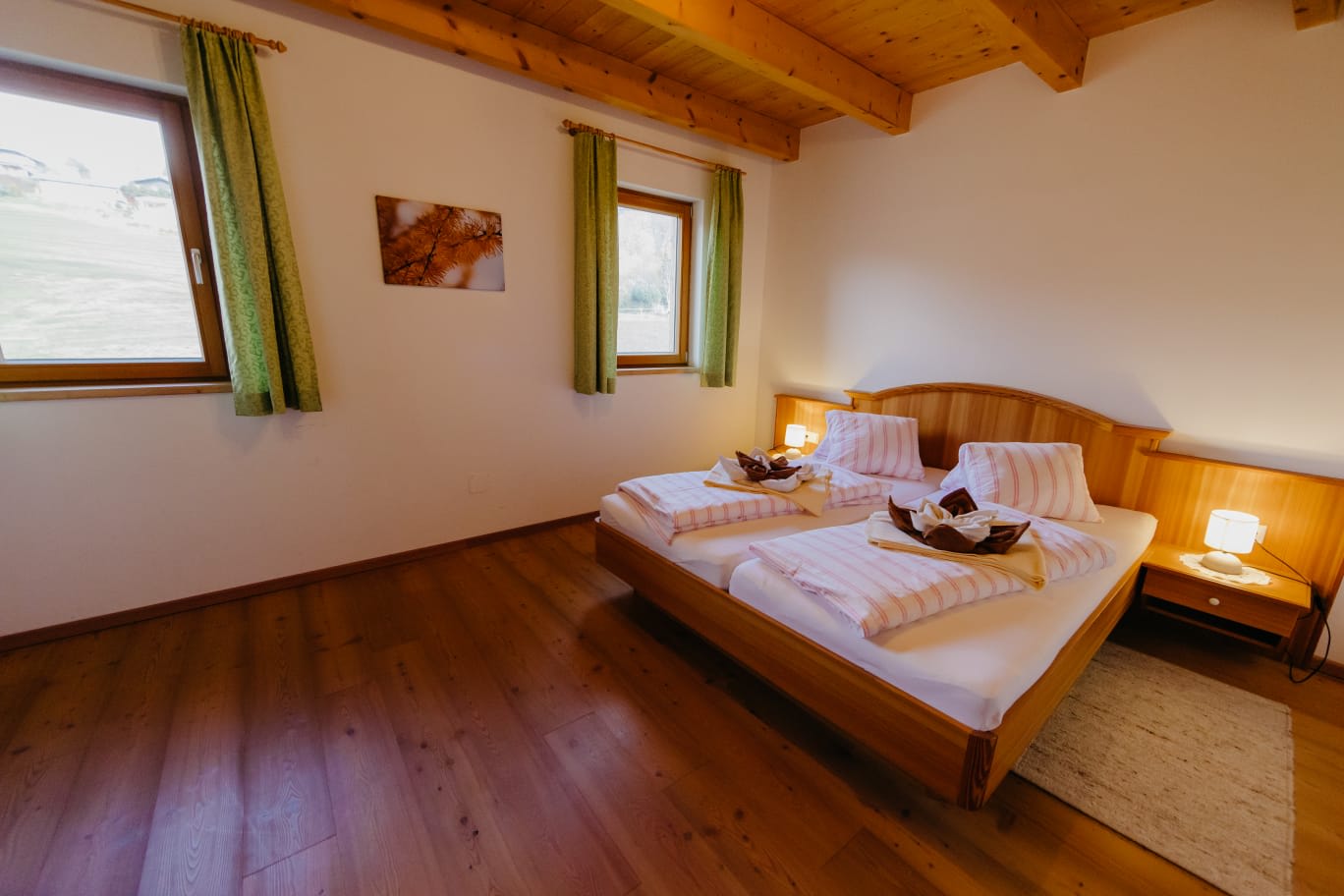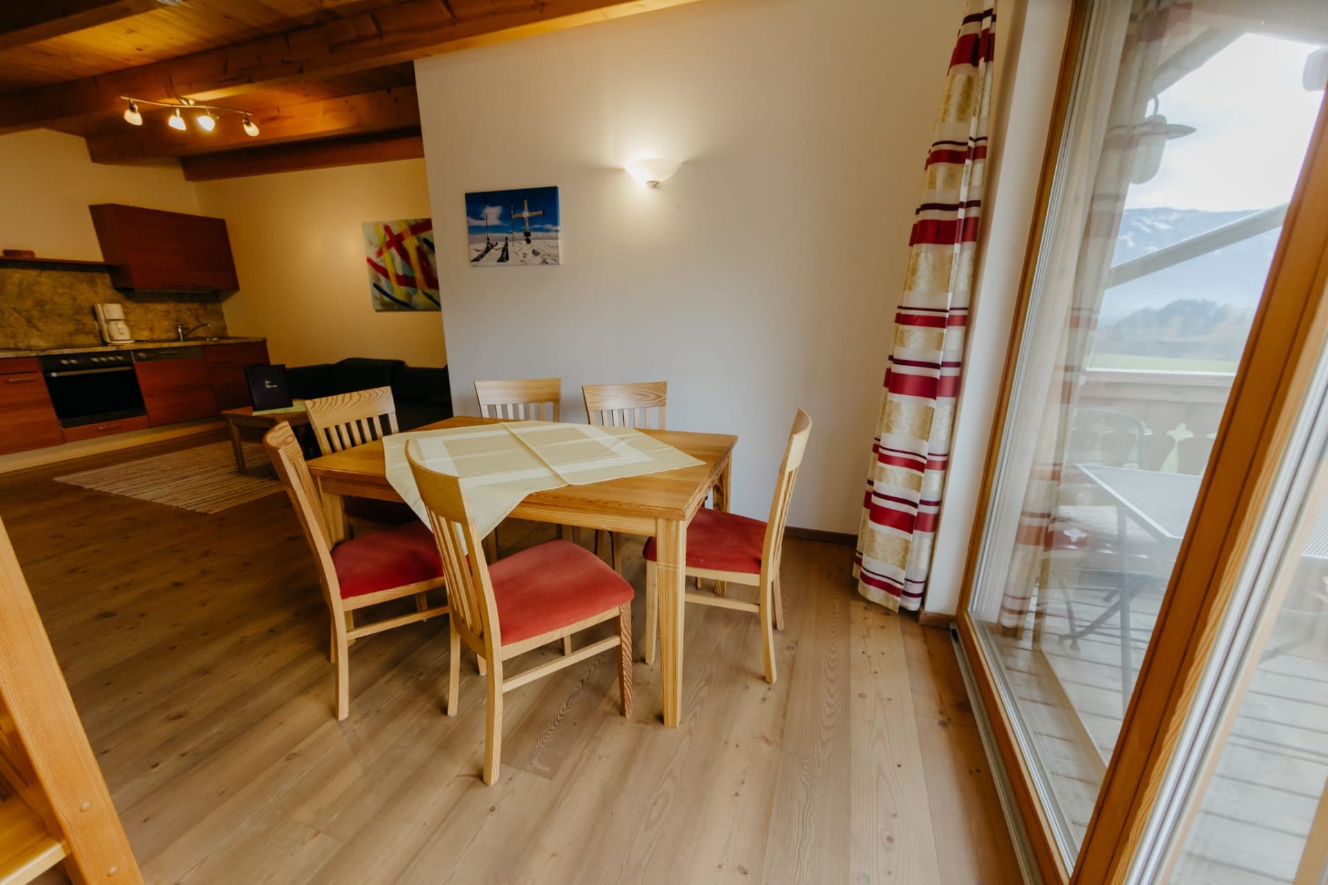 Die Ferienwohnung Maria besteht aus einem großen Wohnraum mit einer komplett ausgestatteten Küche, einer Wohnzimmer Ecke mit SAT-TV und einen schönen Esstisch. Ein großes geräumiges Badezimmer, Schlafzimmer Im 40m² großen Kinderparadies haben Ihre Kits genügend Platz. Auf Ihren eigenen Balkon können Sie die Aussicht auf unseren Sportberg Goldeck oder auf das Gemeineck oder auf unseren Hausberg den Tschirnock in vollen Zügen genießen.