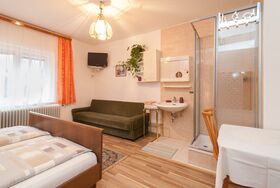 Ein Zimmer im 2.Stock des Nebengebäudes ist für Gäste die auf der Durchreise sind und Ihre Ruhe brauchen und ist durch eine Garderobe mit Zimmer 10 getrennt!