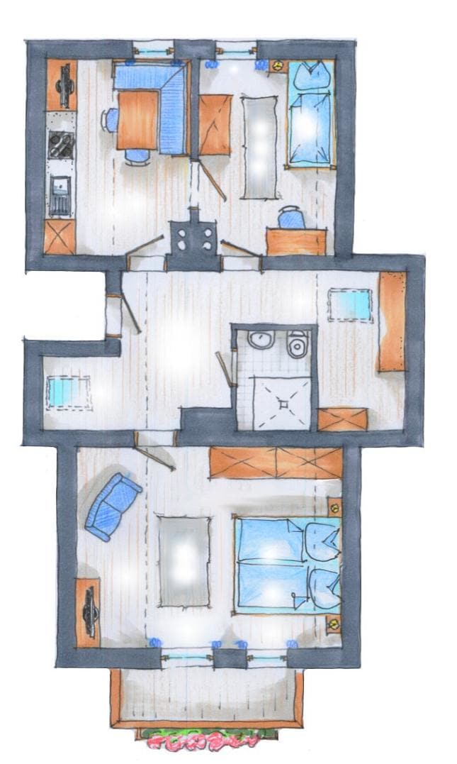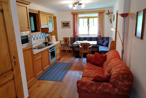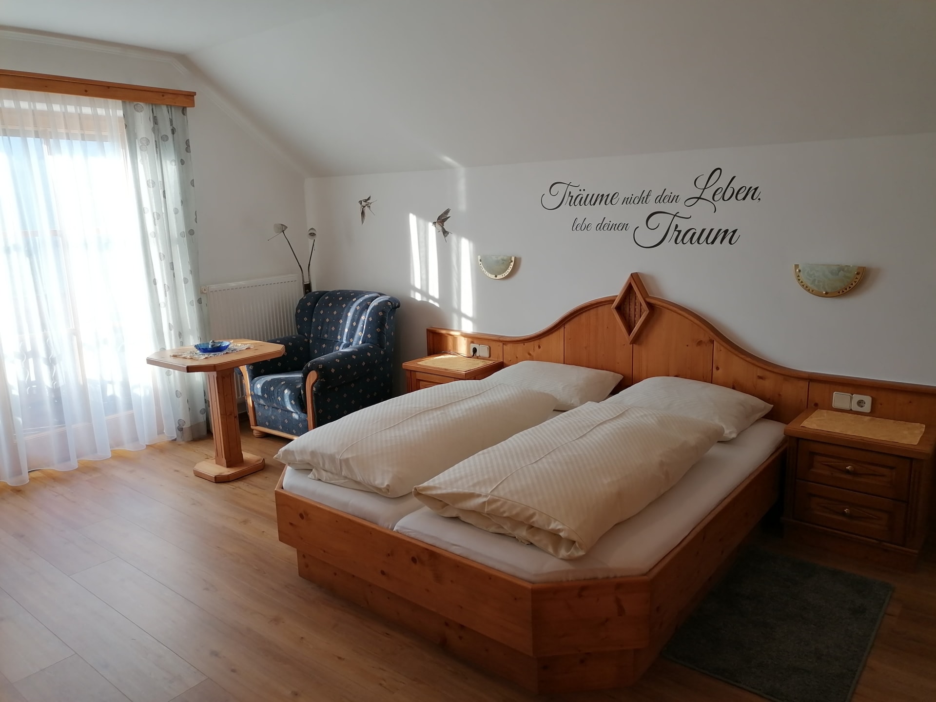 50 m2 Wohnfläche, ebenerdig gelegen laden ein zum Wohlfühlen. Die Ferienwohnung bietet Platz für 2 bis 4 Personen und ist ausgestattet mit Fichtenholzmöbeln und Holzböden, gemütliche Wohnküche mit Kühlschrank, Mikrowelle, Kaffeemaschine, Wasserkocher, E-Herd mit Backrohr, Geschirrspüler, Flachbildschirm mit SAT-TV, Radio, gratis W-LAN, 2 getrennte Doppelbettzimmer, Badezimmer mit Dusche und WC, Fön, eigener Raum mit Waschmaschine, Terrasse mit Sitzgelegenheit und direktem Zugang zu unserer Ruhe Oase mit Hängeliege und Liegestühlen zum Entspannen.