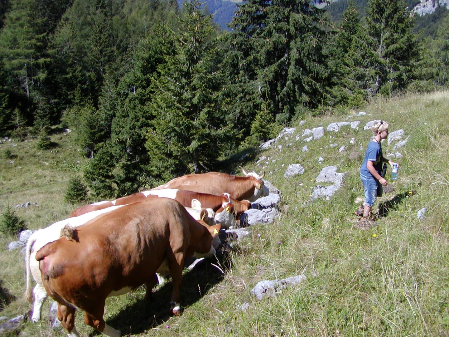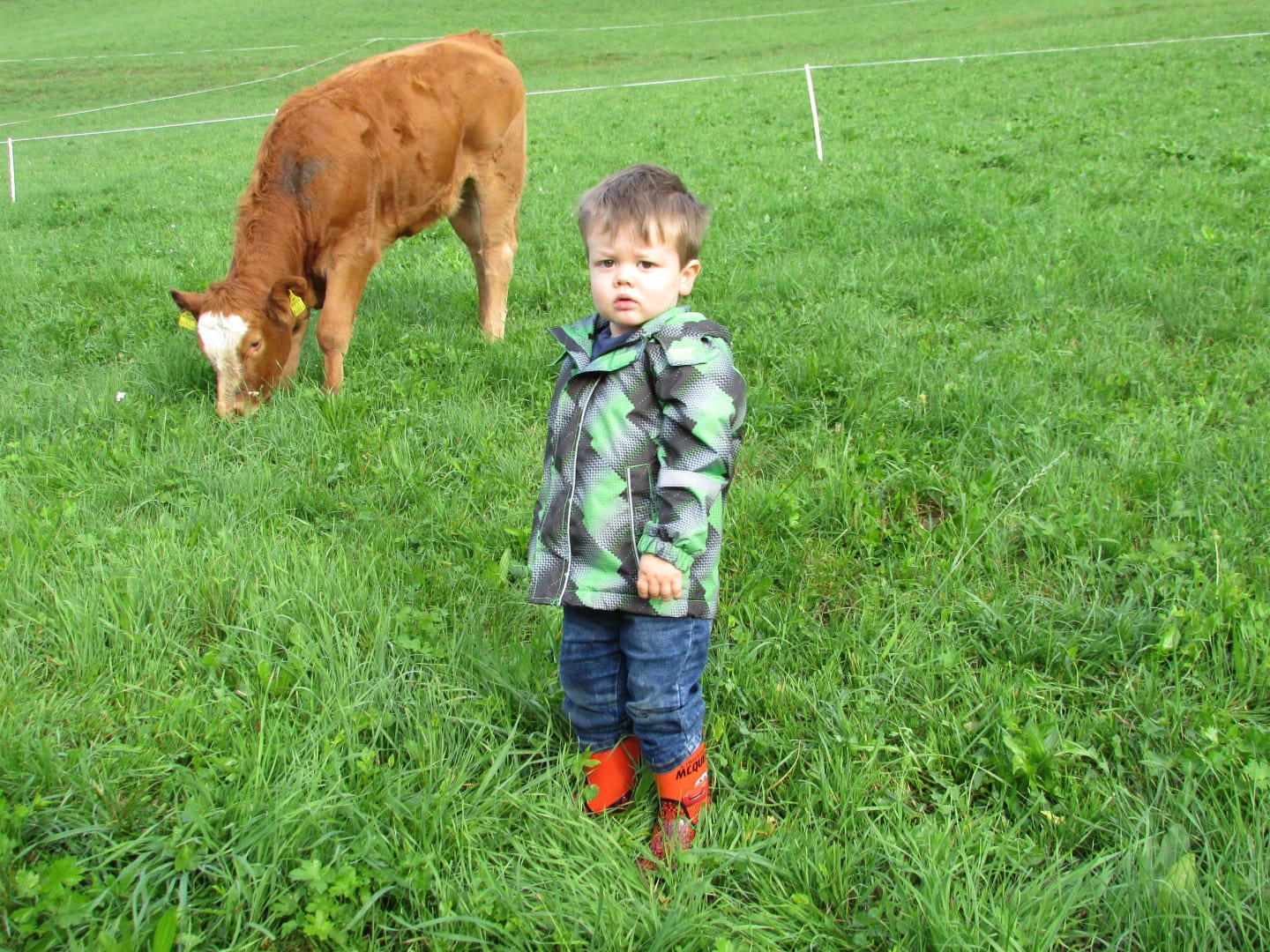 Kinder dürfen bei der Stallarbeit mithelfen und so ein wenig Einblick in das Leben eines Bergbauern erhalten.