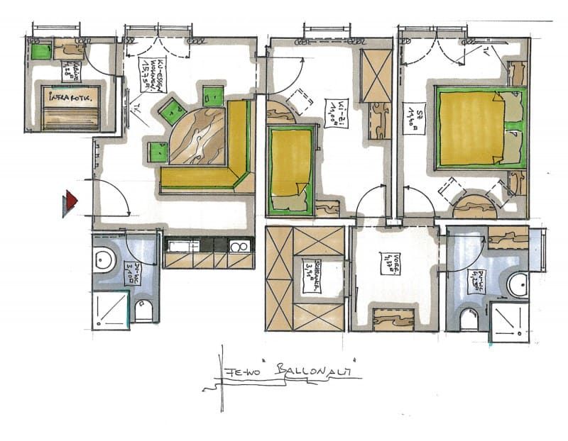 Unsere Ferienwohnung Ballonalm besteht aus sieben Räumen. Sie ist ausgestattet mit einer geräumigen Wohn-Ess-Küche, einem Doppelzimmer, Infrarotkabine, einem Kinderzimmer mit einem Stockbett, einem Schrankraum, sowie zwei Bädern inklusive Dusche und WC. Die Küche ist vollwertig ausgestattet, es sind zwei Sat TV vorhanden und Sie können kostenloses WLAN nutzen.