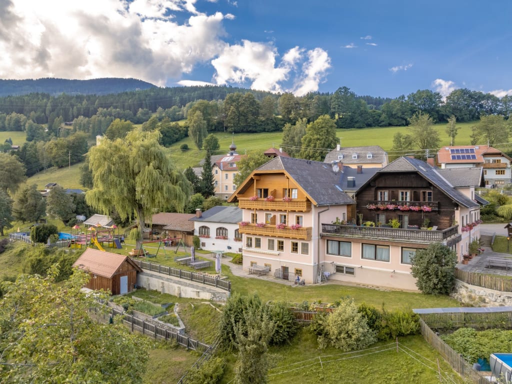 Genießen Sie mit Ihren Kindern in lockerer Atmosphäre das Leben auf dem Land bei Familie Preis. Auch größere Familien finden in unseren großzügig gestalteten Ferienwohnungen (60 - 80 m2) genügend Platz und jede Menge Erholung am Swimmingpool, auf dem riesigen Spielplatz im Garten, bei den Tieren, bei netten Gesprächen mit Bauer Heinrich oder beim Kühe melken. Lassen Sie sich unsere vielen hauseigenen Produkte gut schmecken. Relaxen Sie im Winter in der Infrarotkabine (in jeder Wohnung verfügbar) oder erleben Sie Abenteuer auf unserem Hausberg – dem Goldeck (in 20 Minuten erreichbar).