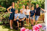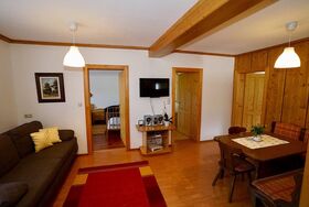 Ferienwohnung mit ca. 65 m²: Wohnraum mit voll ausgestatteter Küche, Couch, Sat-TV und Stereoanlage, Eltern- und Kinderschlafzimmer, Bad/WC und Balkon.