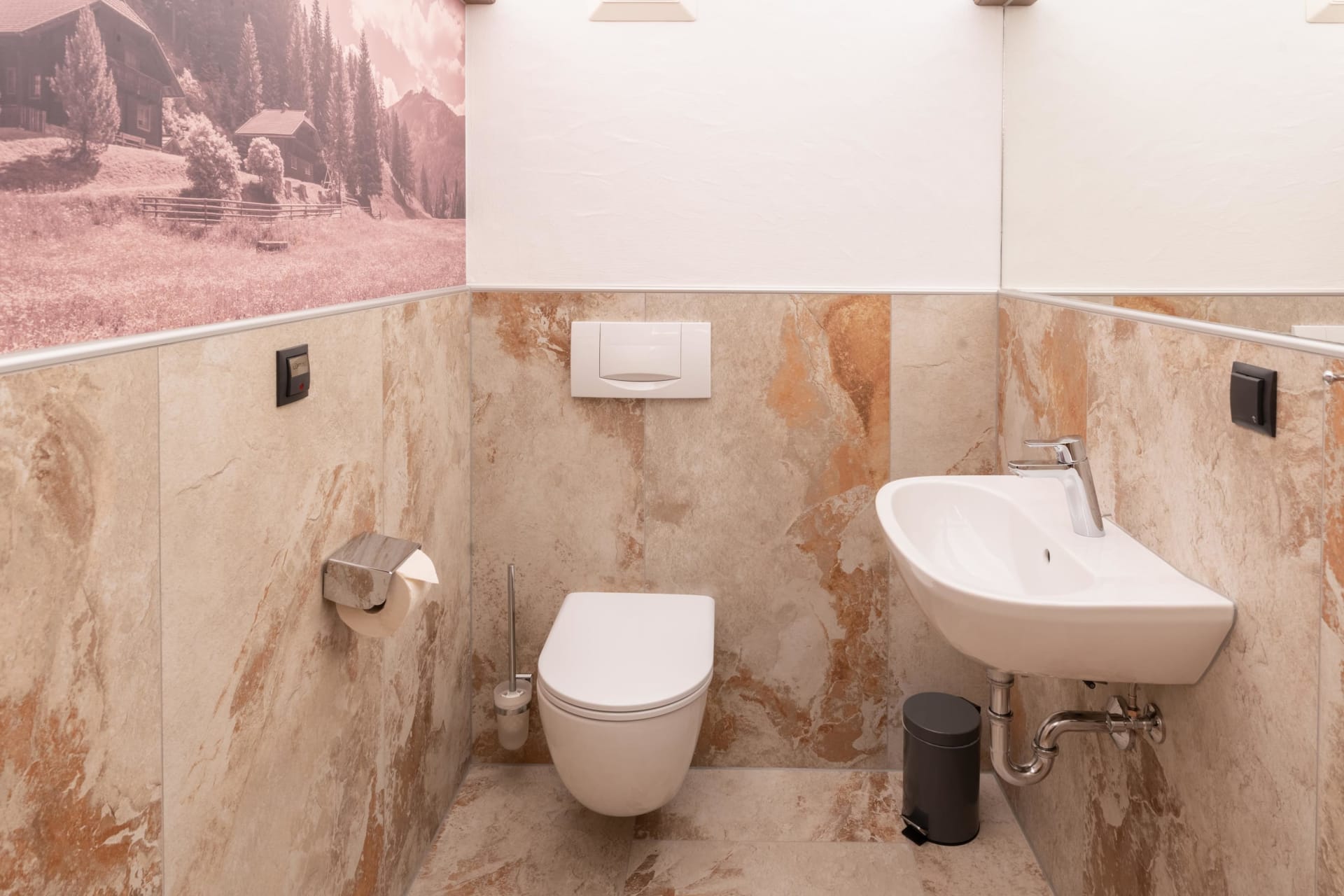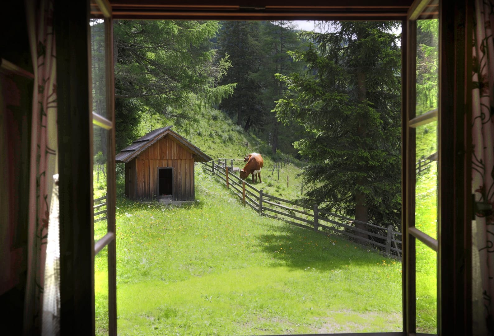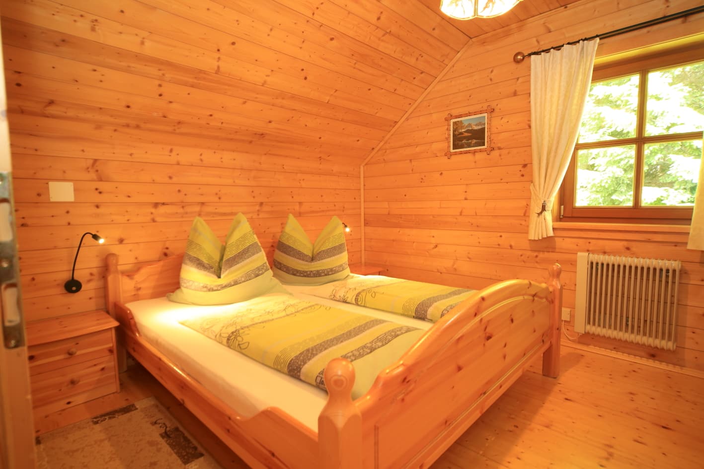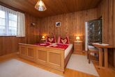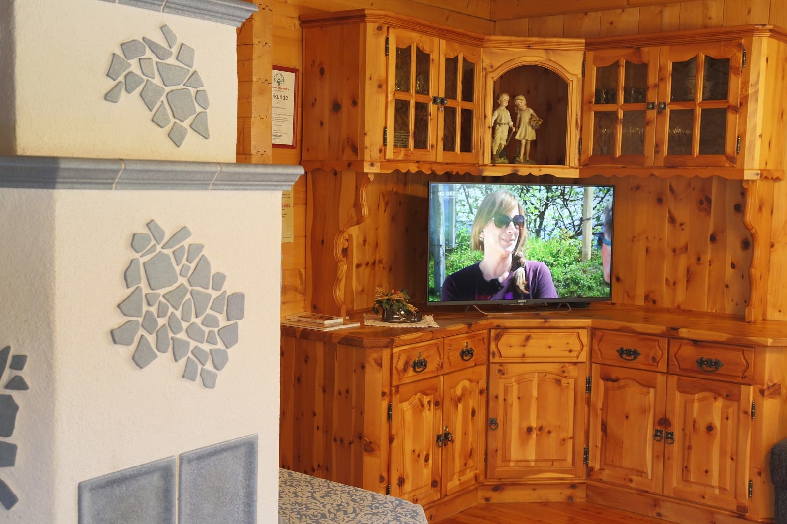 2 Doppelbettzimmer, Wohnküche mit Kachelofen, Kochecke, E-Herd, Mikrowelle, Geschirrspüler, Dusche mit WC, Vorratsraum, Sauna im Keller, Waschmaschine, Gitterbett, Wickeltisch, Hochstuhl, baby- und kindersicher, Hand- und Saunatücher, Bettwäsche, 60 m2 Wohnfläche, SAT-TV, freies WLAN