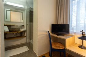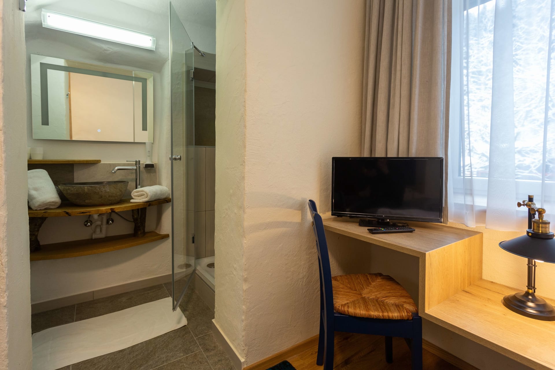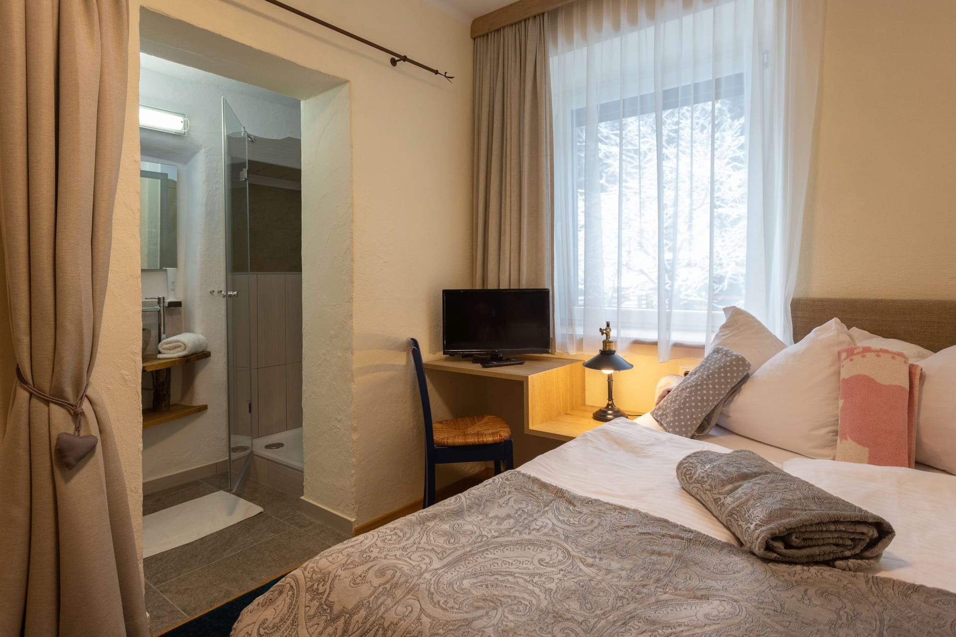 für 1 Personen, Hochwertige Ausstattung, Dusche, WC, TV, Safe, Föhn, auf Wunsch Babyausstattung. Singlezimmer liegt auf der gleichen Ebene mit