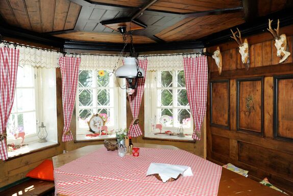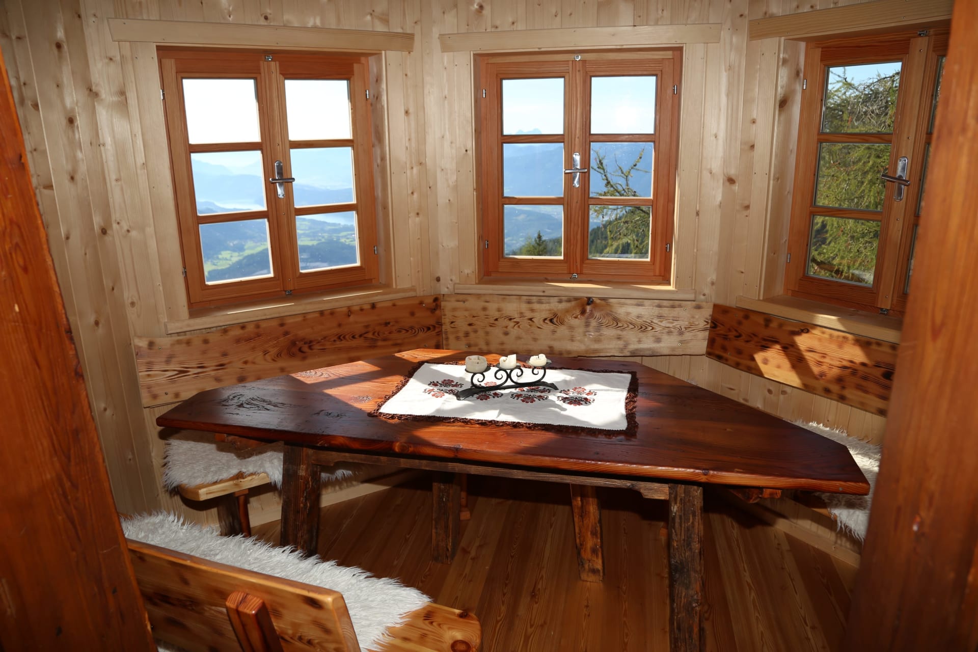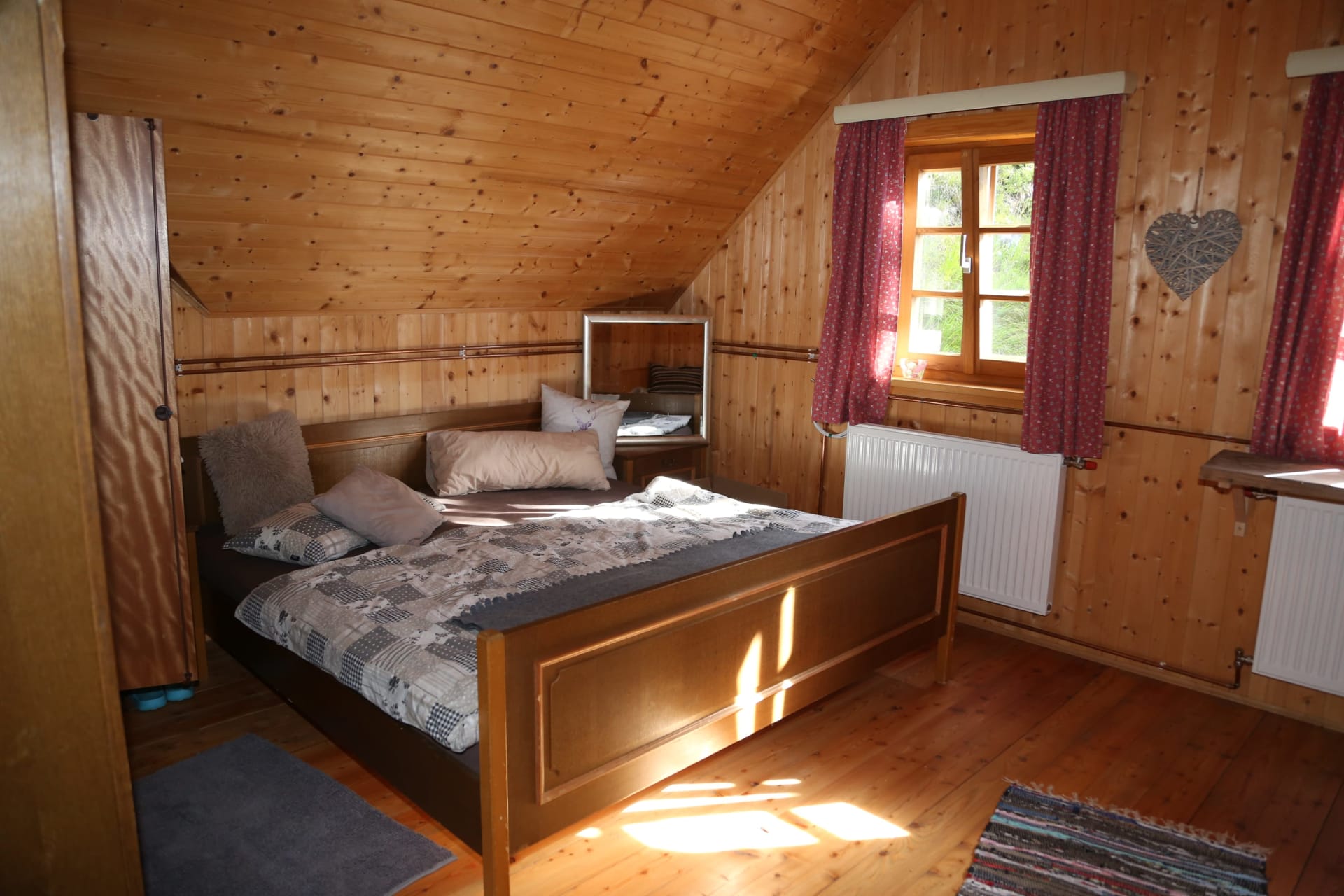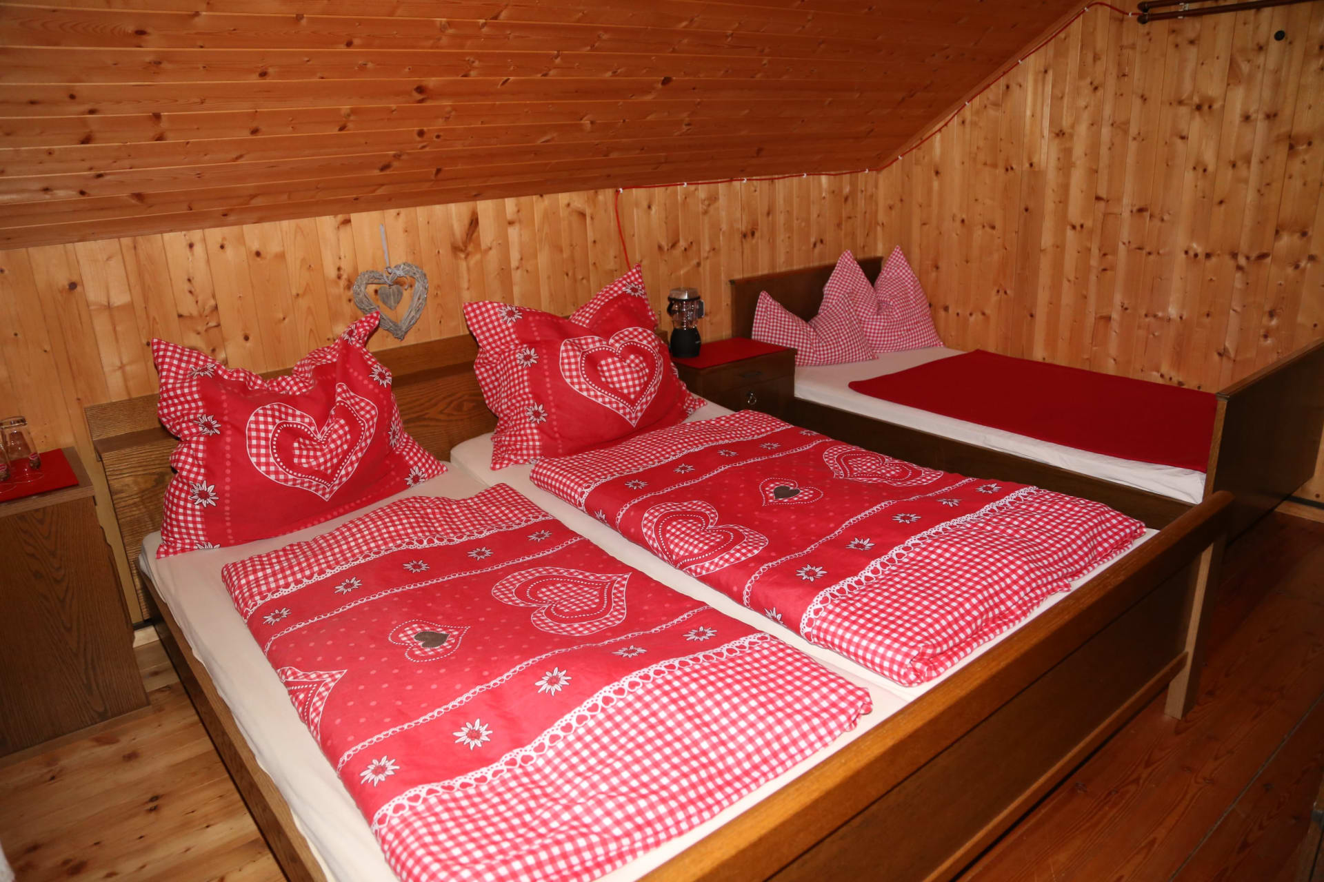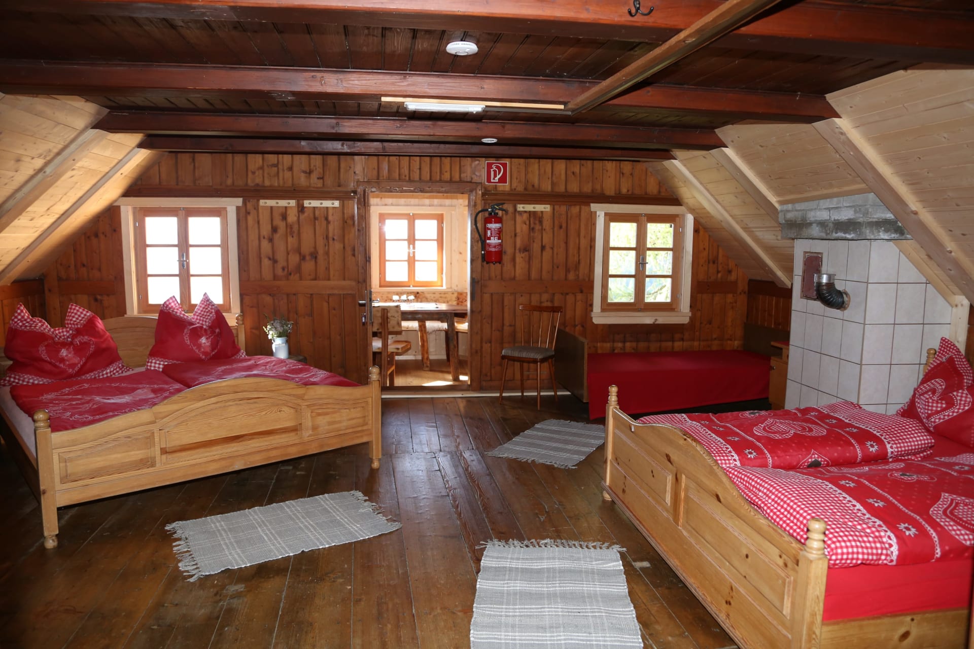 Die Hütte bietet im ersten Stock 2 Doppelzimmer mit Zustellbetten sowie ein großes Familienzimmer. Die Zimmer verfügen über Berg- bzw. Seeblick. Die Sanitäranlagen (Dusche, WC getrennt) befinden sich im Erdgeschoss. Weiters ist im Erdgeschoss die Küche/Gastzimmer mit urigem Holzherd sowie der Aufenthaltsbereich.