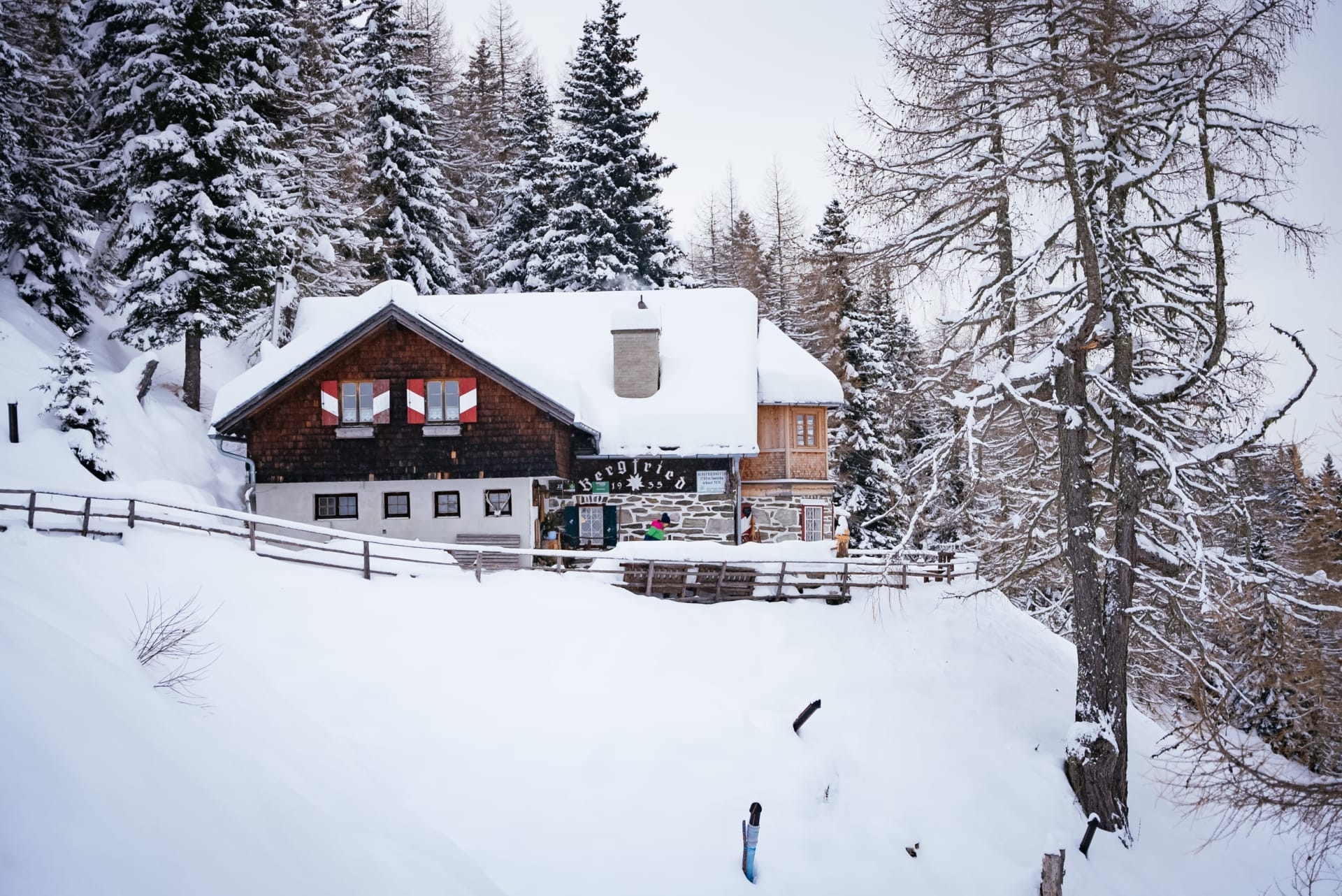 Im Winter kann man mit Schneeschuhen die Umgebung erkunden, eine Skitour unternehmen oder einfach einen Schneemann bauen und die herrliche Aussicht genießen. Die Anfahrt im Winter erfolgt mit einem Skidoo und das Gepäck wird je nach Schneelage mit einem Snowmobil zur Hütte gebracht. Keine Zufahrt mit dem Auto möglich. Im Winter ist die Hütte als Selbstversorgerhütte ohne Verpflegung buchbar.