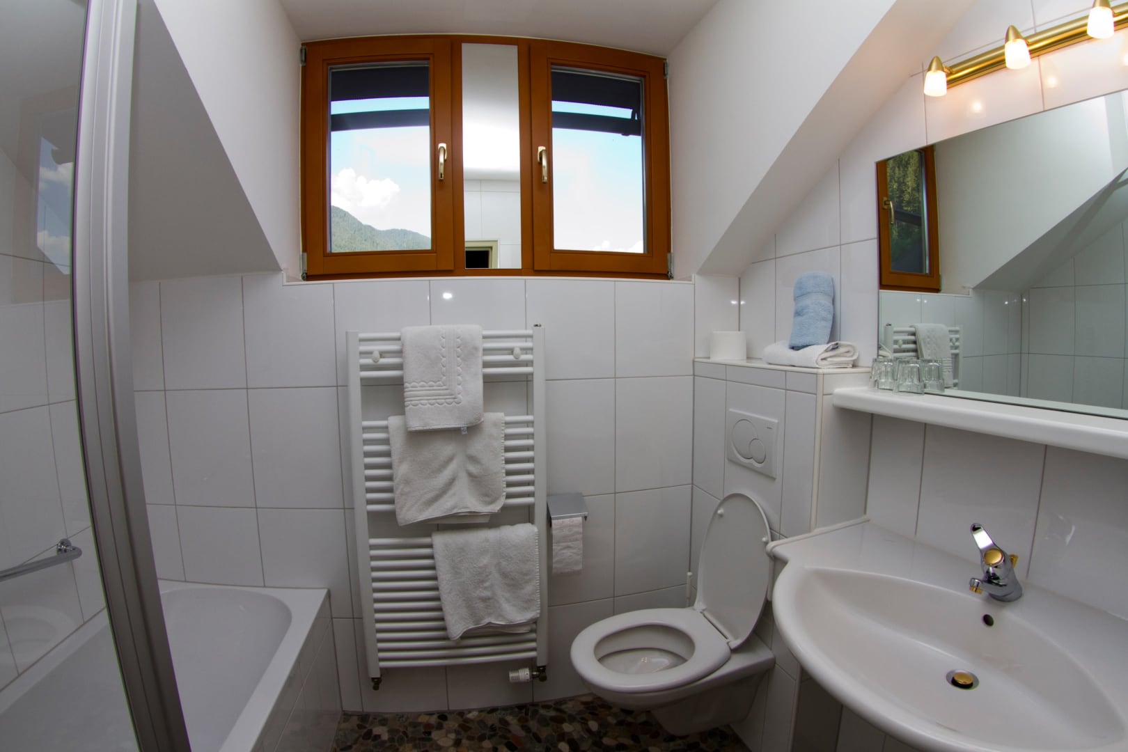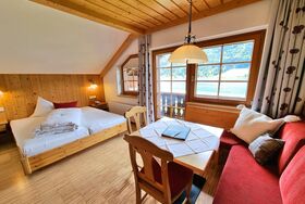 Sehr gemütliche Ferienwohnungen mit hellen Vollholzmöbeln, 30m², im 2. Stock mit wunderschönem Seeblick. Schlafzimmer mit Doppelbett, Essecke, abgetrennter Vorraum mit kleiner Küche (Geschirrspüler, Geschirr, Besteck, 2-Platten Herd, Kühlschrank, etc.). Telefon, Smart-TV, Safe, Balkon mit Klapp-Tisch und Stühlen. Badezimmer mit Badewanne, Wc und Föhn.