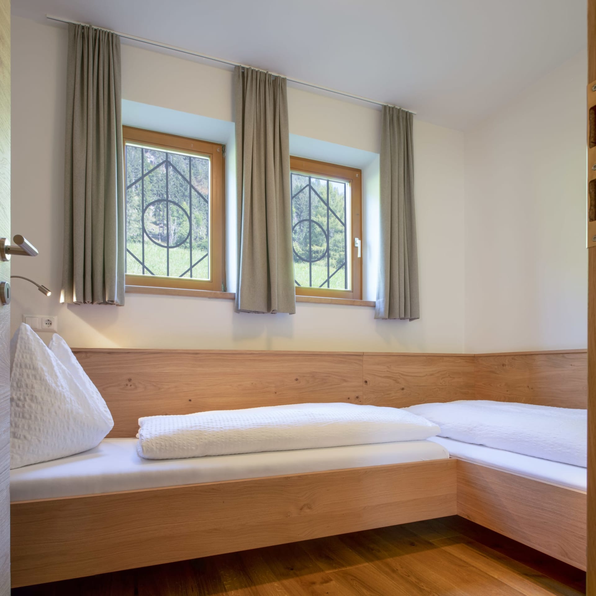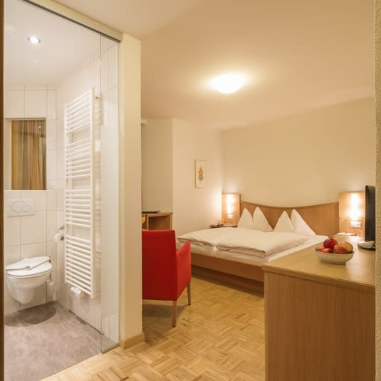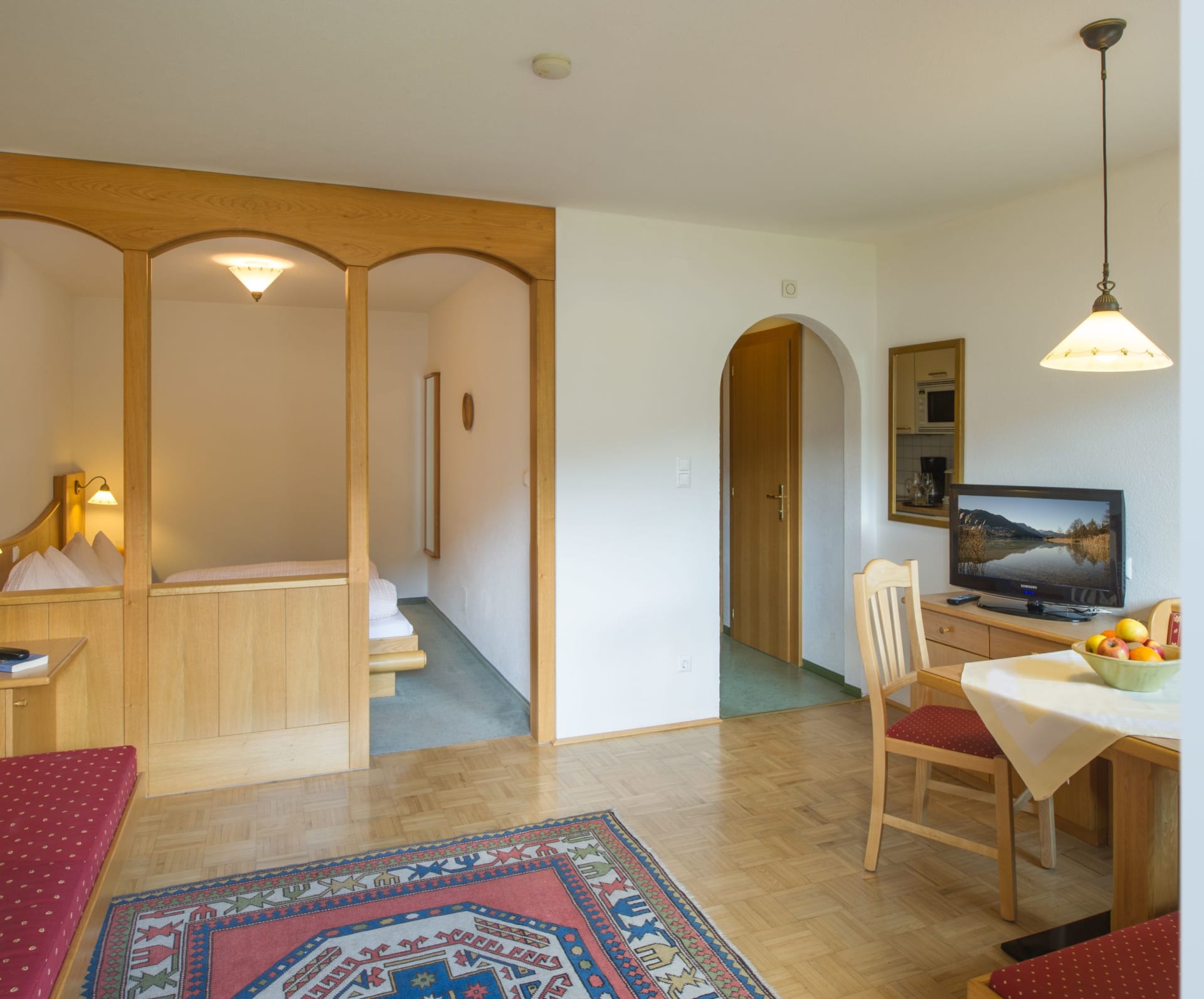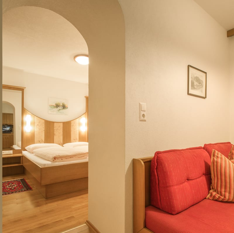 Gemütliches Doppelzimmer, liebevoll eingerichtet mit hellem, heimischen Holz, kleiner Sitzecke - einfach zum Wohlfühlen