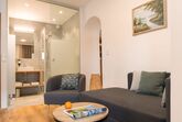 Ausstattung: modernes WC und Dusche mit Haartrockner, Kosmetikspiegel, Handtücher, W-Lan, Kabel-TV/SAT-TV, Safe, Bettwäsche, Gartenmöbel,