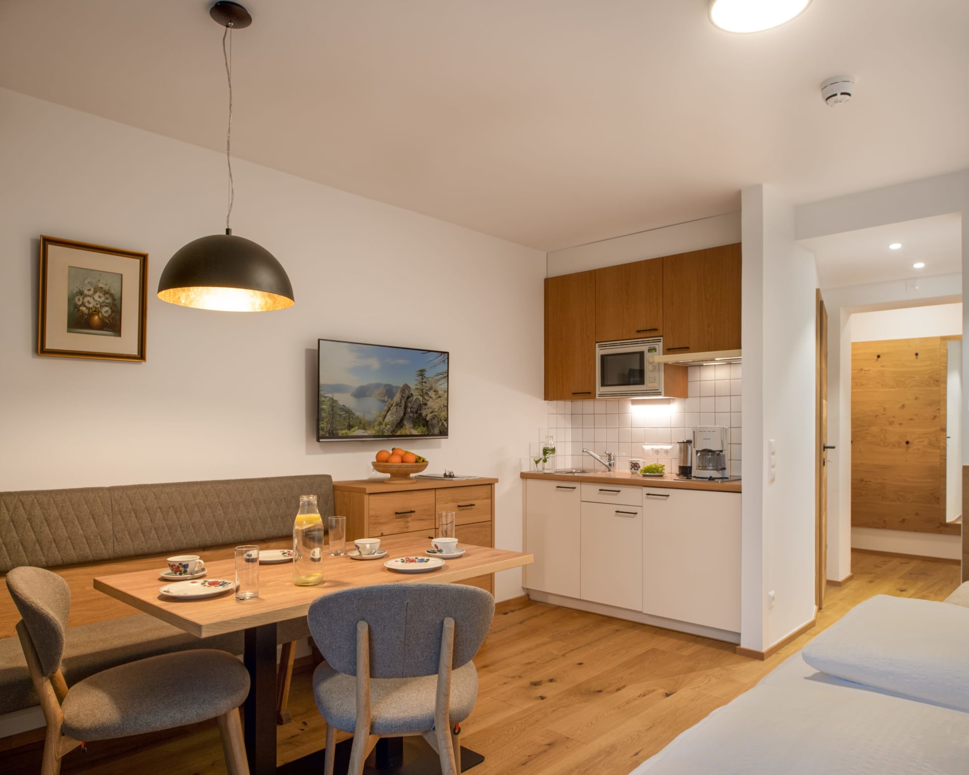 Das köstliche Biofrühstück aus Oma's Bauernküche und der gute Duft, der sich durch's ganze Haus zieht, machen Appetit auf traditionelle Küche und Naturkost. Halbpension haben wir leider nicht –