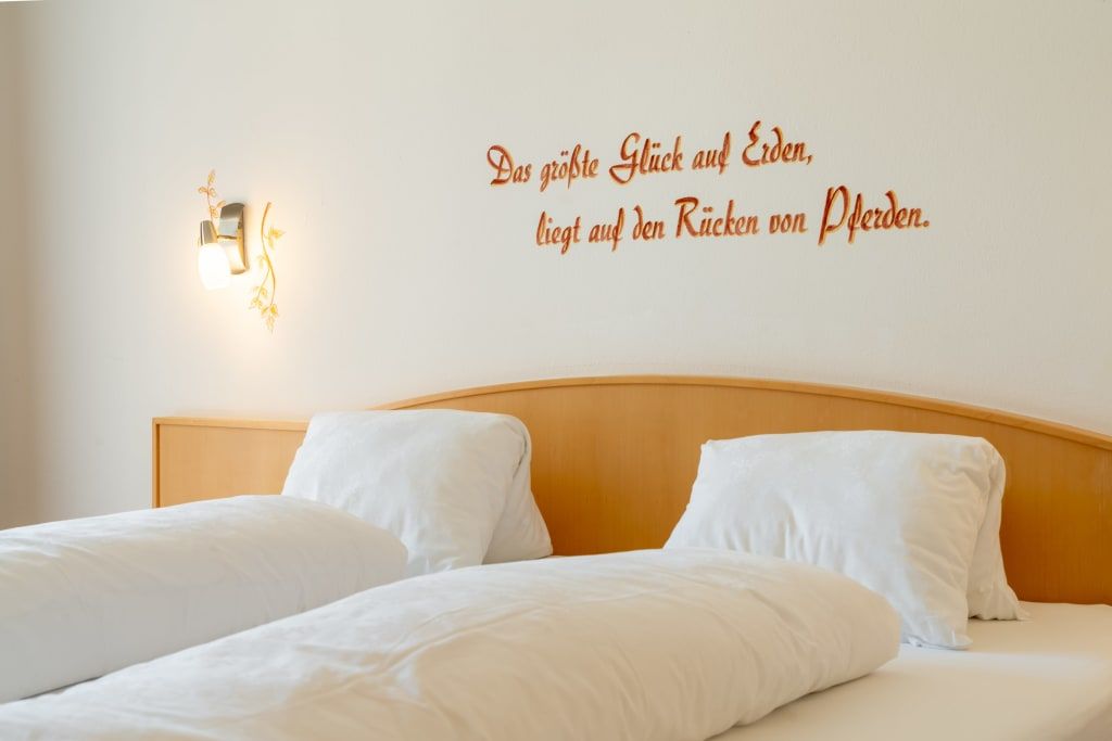 2 Doppelzimmer für 2 Personen mit Dusche/WC, Fön, Sat-TV, Telefon, Internet (W-Lan), Kühlschrank und Balkon mit Seeblick. Die Appartements Kuhstall sind durch eine Verbindungstür mit den Zimmern Milchkammer kombinierbar.