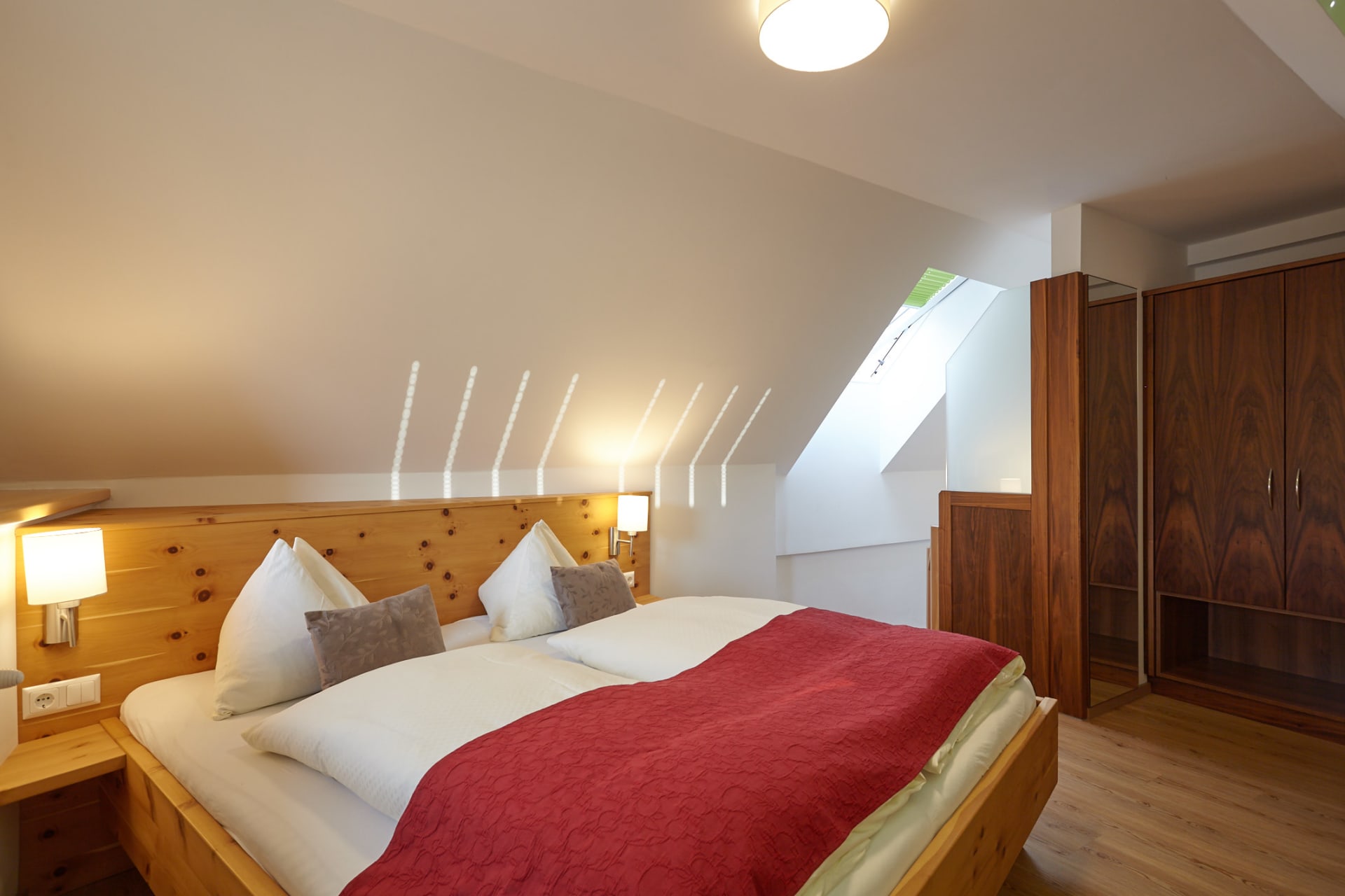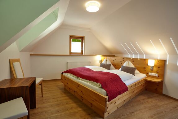 Das Zimmer ist mit Zirbenholz vom Tischler eingerichtet und mit Holzböden ausgestattet. Im Hauptraum gibt es eine gemütliche Sitzecke mit Ausblick auf die Hochalm. Das geräumige Bad ist mit Waschbecken, und Dusche ausgestattet, separates WC. Das Appartement ist für 2 Erwachsene und 2 Kinder geeignet, Gitterbett wird gerne zur Verfügung gestellt.