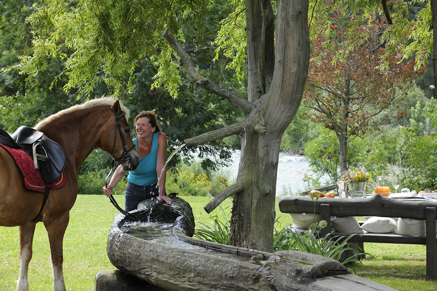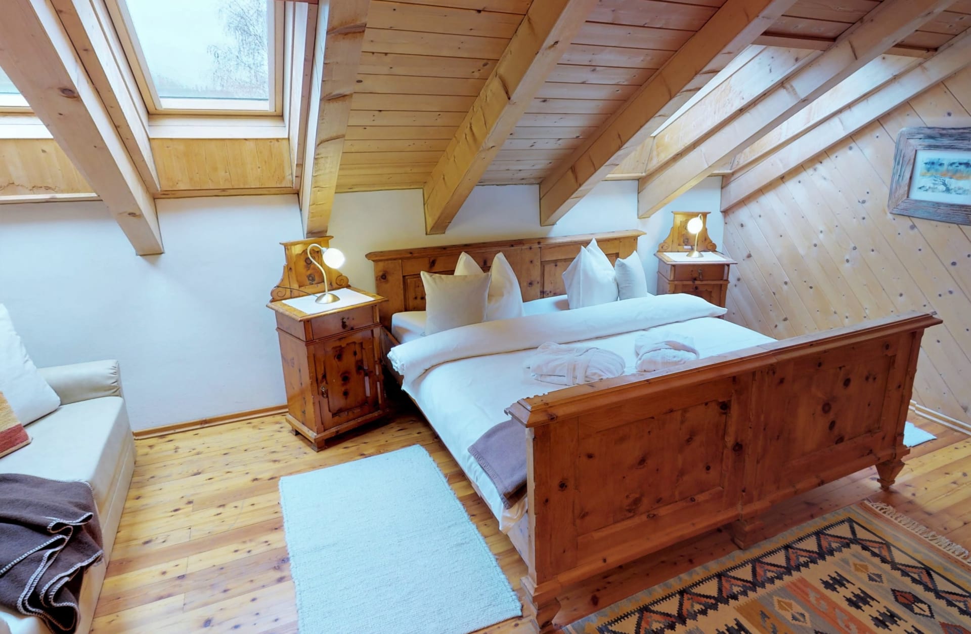 Die 120 m² große Gutshofsuite im Landhausstil ist mit einer gemütlichen Wohnstube mit offenem Kamin, voll eingerichteter Küche, gemütlicher Essecke, Couch zum Kuscheln sowie TV, zwei urigen Schlafzimmern, Bad und breitem Balkon mit Blick auf die Möll ausgestattet. Die Suite ist besonders ruhig, aber trotzdem zentral im Gutshaus gelegen.