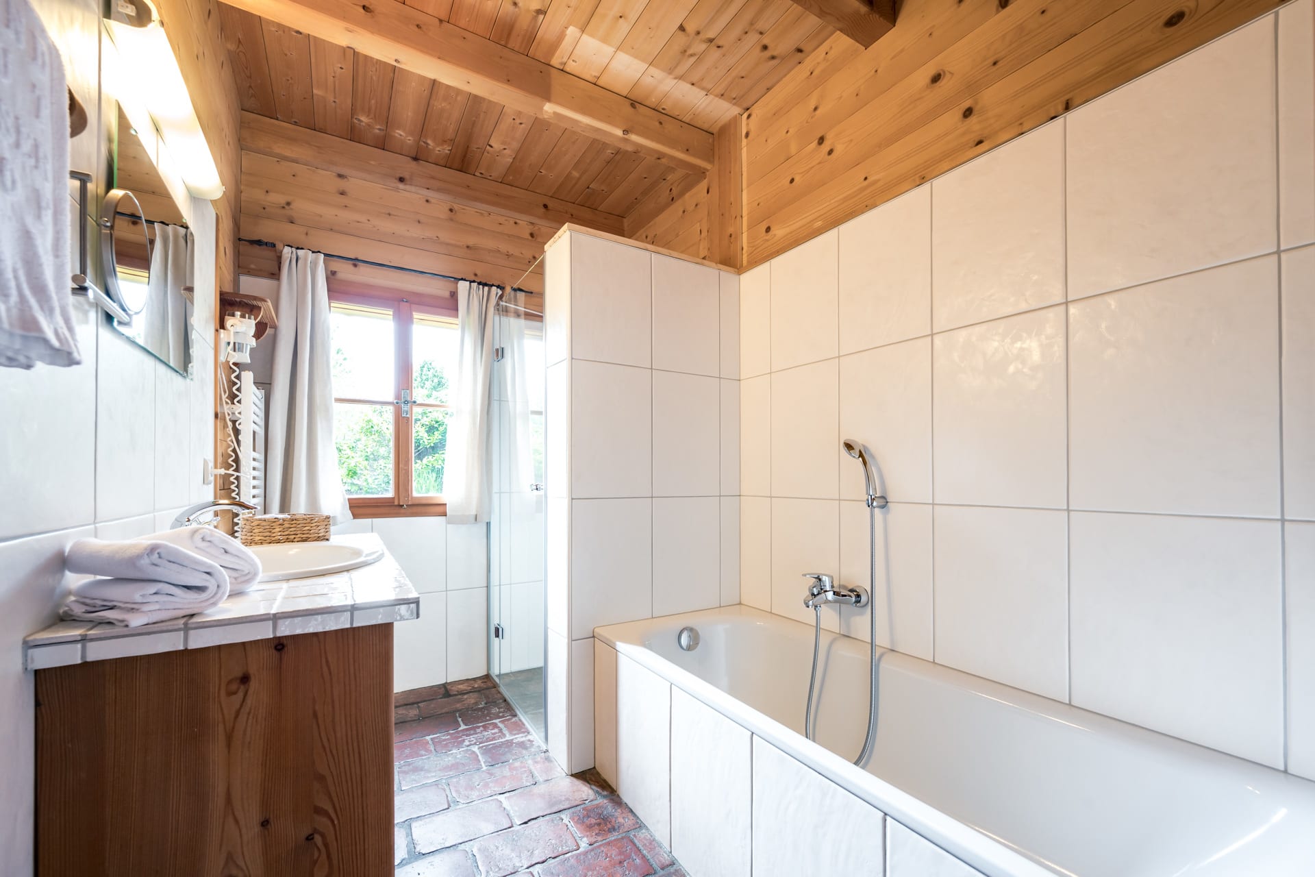 Unsere exklusiven Premium Chalets befinden sich in der ersten Reihe im Chaletdorf und sind 120 m² groß. Mit einer komplett ausgestatteten Küche und gemütlicher Wohnecke, einem Doppelbettzimmer mit Badezimmer inklusive Badewanne und eigenem WC im Erdgeschoss und zwei weiteren Doppelbettzimmern mit Bad und Balkon im Obergeschoss bietet dieses Chalet 6 Erwachsenen Platz. Eines der beiden Schlafzimmer im Obergeschoss hat einen zusätzlichen Wohnbereich. Eine große möblierte Terrasse mit Grill und einzigartigem Ausblick auf den Badeteich und den Wildwasserfluss, sowie eine eigene Liegewiese mit einem privaten Hot Tub für romantisch entspannende Stunden laden zu einem gemütlichen Außenaufenthalt ein.