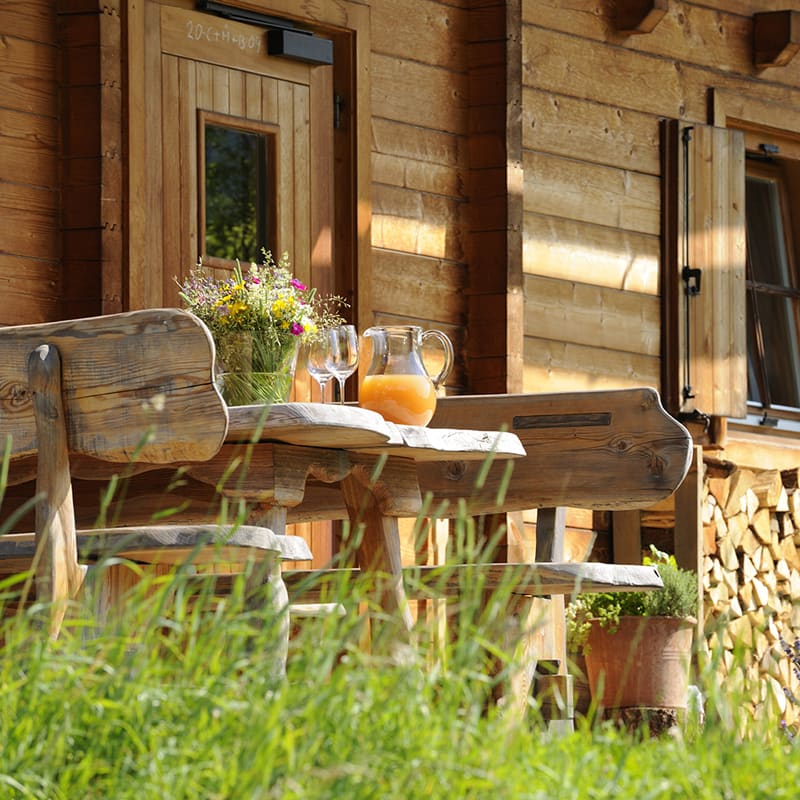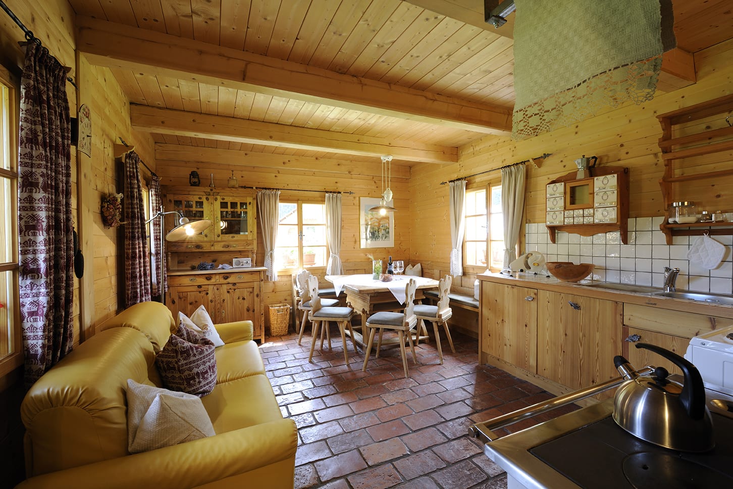 Echtes Alm-Feeling pur! Mit ihrem einzigartigen Hüttencharakter beflügelt unsere kleine Sennhütte die Fantasie ihrer Bewohner. Dennoch bietet das Chalet Platz für bis zu 6 Personen. Eine gemütliche Wohnküche, 1 modernes Bad und urige Schlafzimmer laden zum Wohlfühlen ein. Das Highlight ist wohl der kuschelige Dachboden mit Doppelbett. Eine große möblierte Terrasse mit Grill und eine Liegewiese laden zu einem gemütlichen Aufenthalt ein.