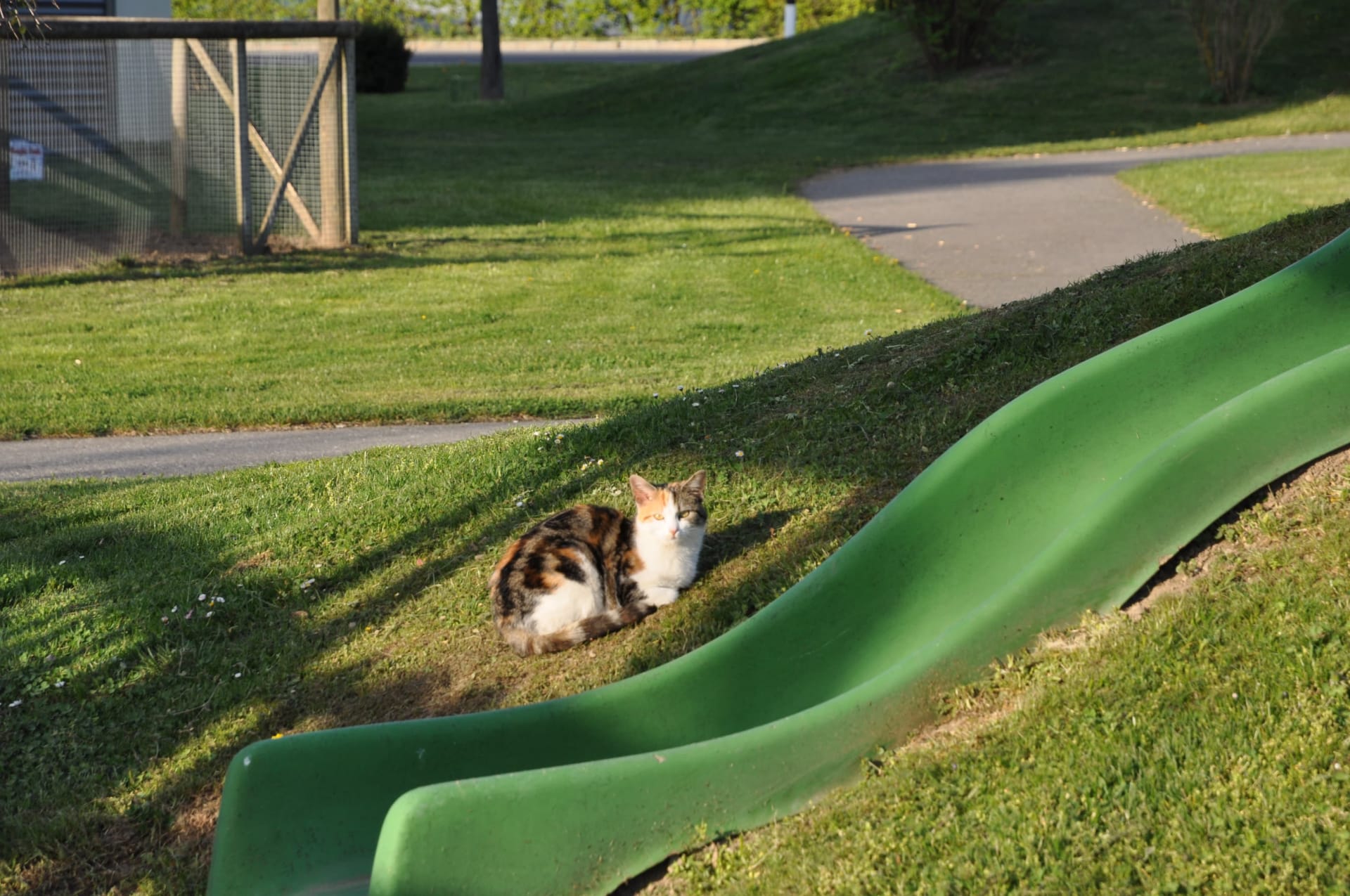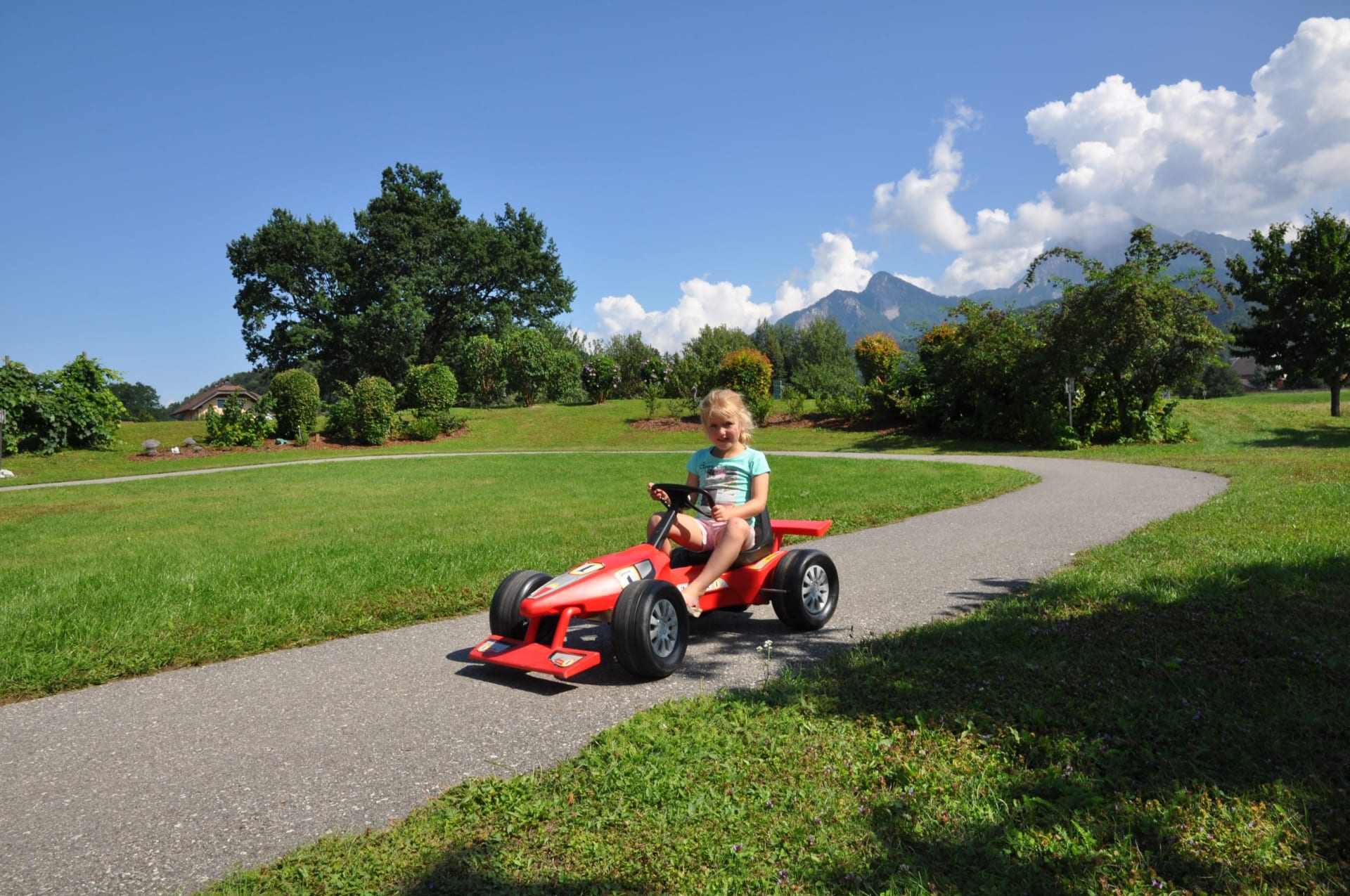 Ihre Kinder erkunden inzwischen den Garten (ca. 6.000 m² Fläche von über 33.000 m² Gesamtfläche) und lernen die Schmusekatzen des Hauses kennen!