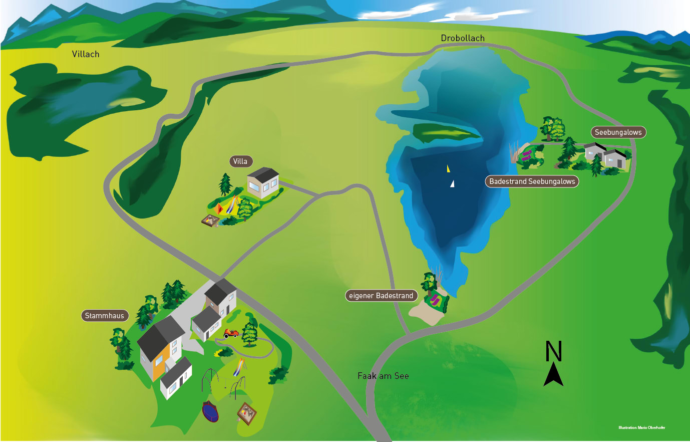 Unsere Ferienhäuser - die Seebungalows bieten Ihnen modernes und geräumiges Wohnen mit Charme am Faaker See mit sonnigem Badestrand (ca. 150-200 m zum Strand)!