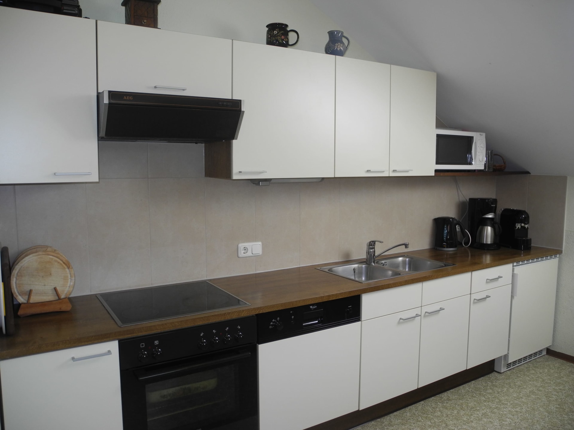 Unsere Ferienwohnung ist komplett ausgestattet mit Handtüchern, Bettwäsche, Geschirrspüler, Mikrowelle, Kaffeemaschine (Filter und Tabs), Wasserkocher, Sat-TV im Wohnzimmer und Bibliothek.