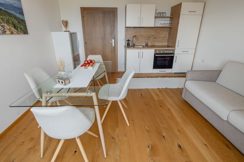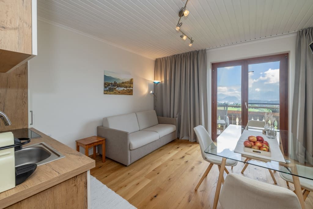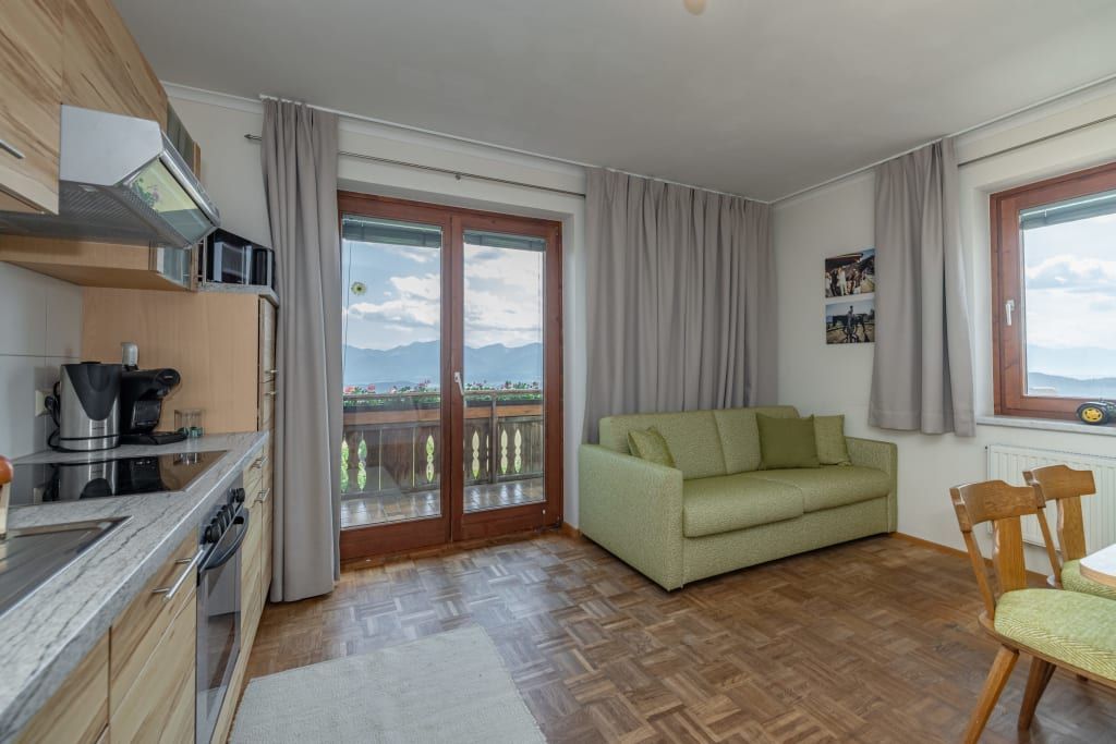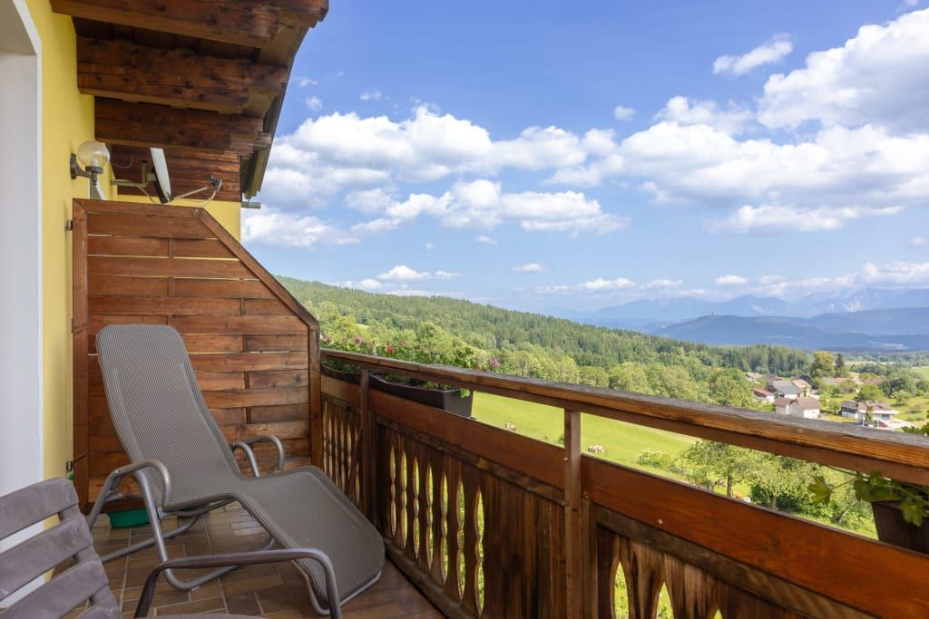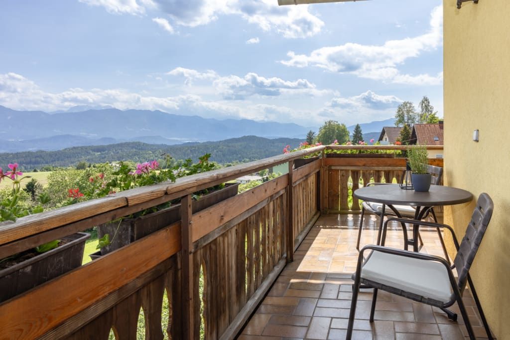 Mit Panorama Blick ins Rosental, die Karawanken, Julischen Alpen und auf den Faakersee.