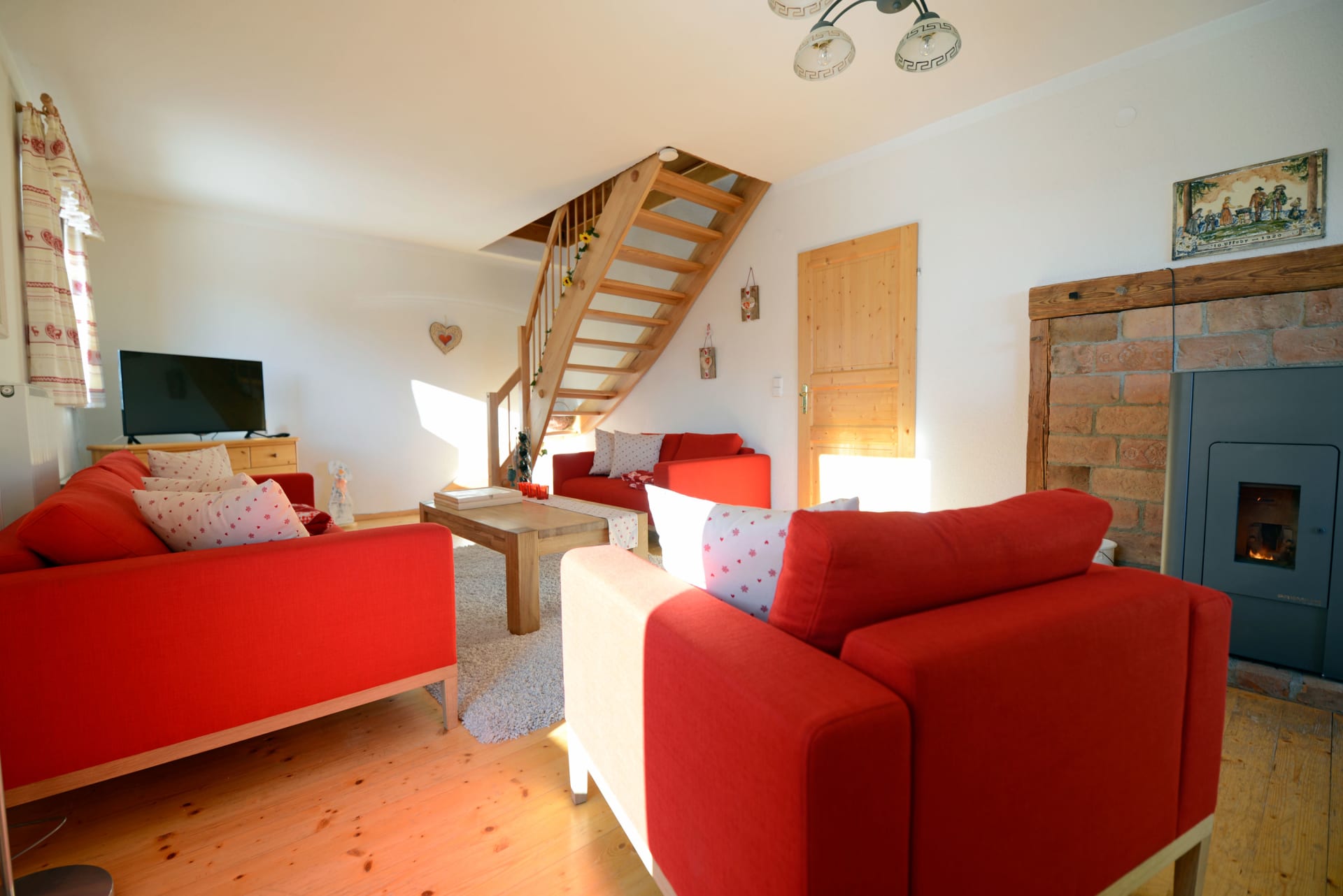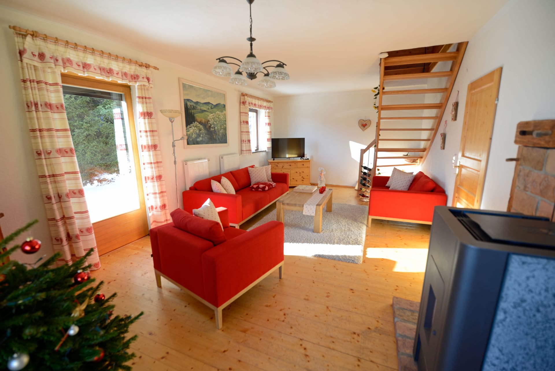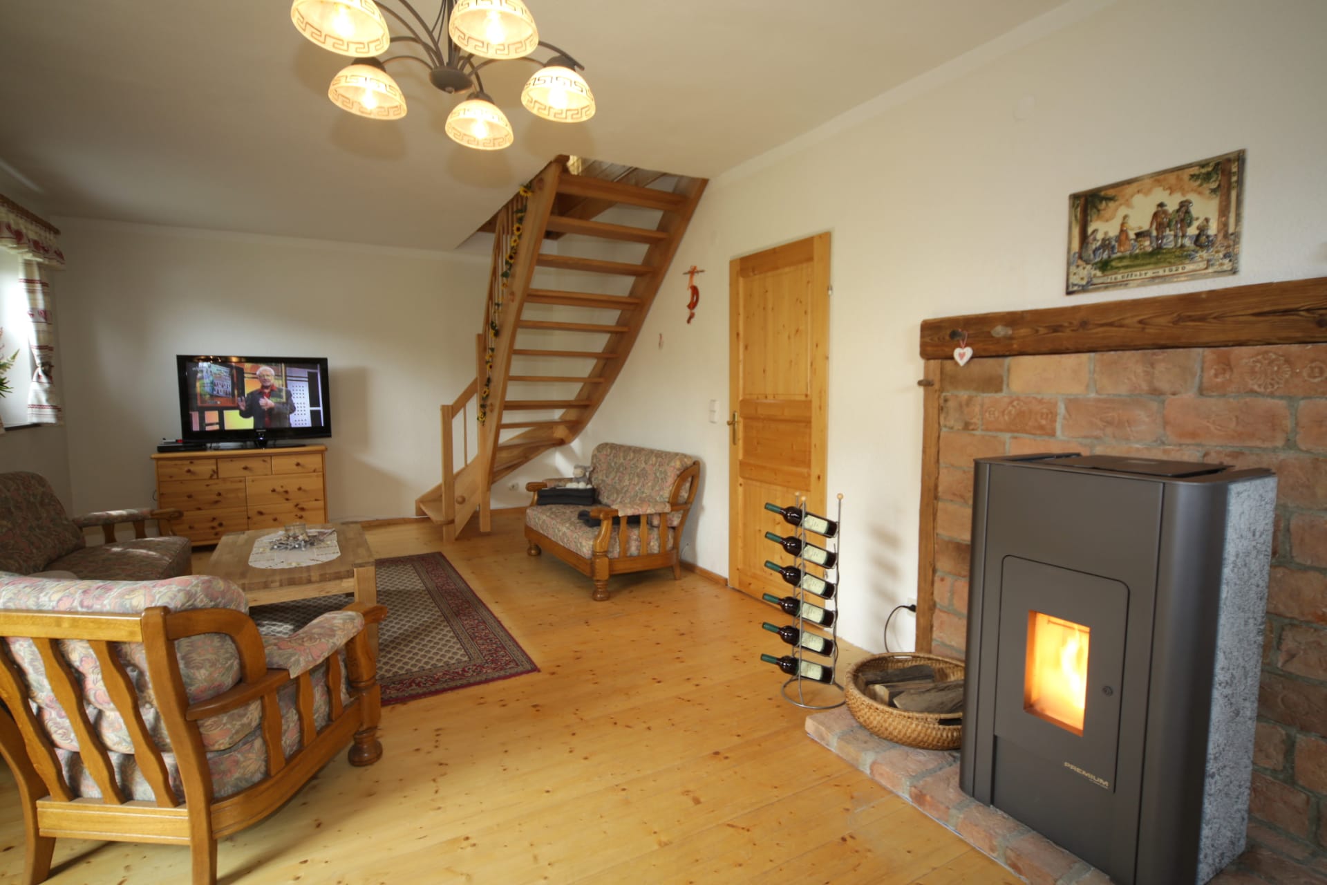 • großer Wohnraum mit Pelletsofen (automatisch) und SAT/TV
