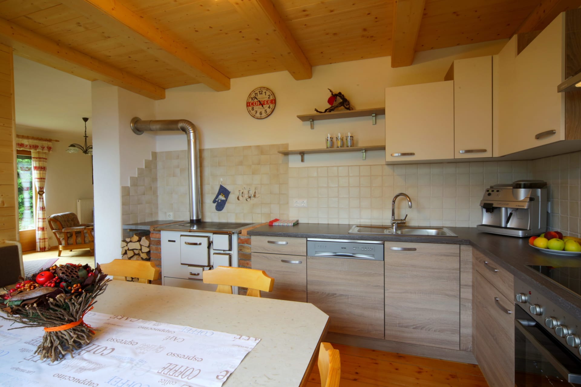• komplett ausgestattete Küche, große Sitzecke, Holzofen