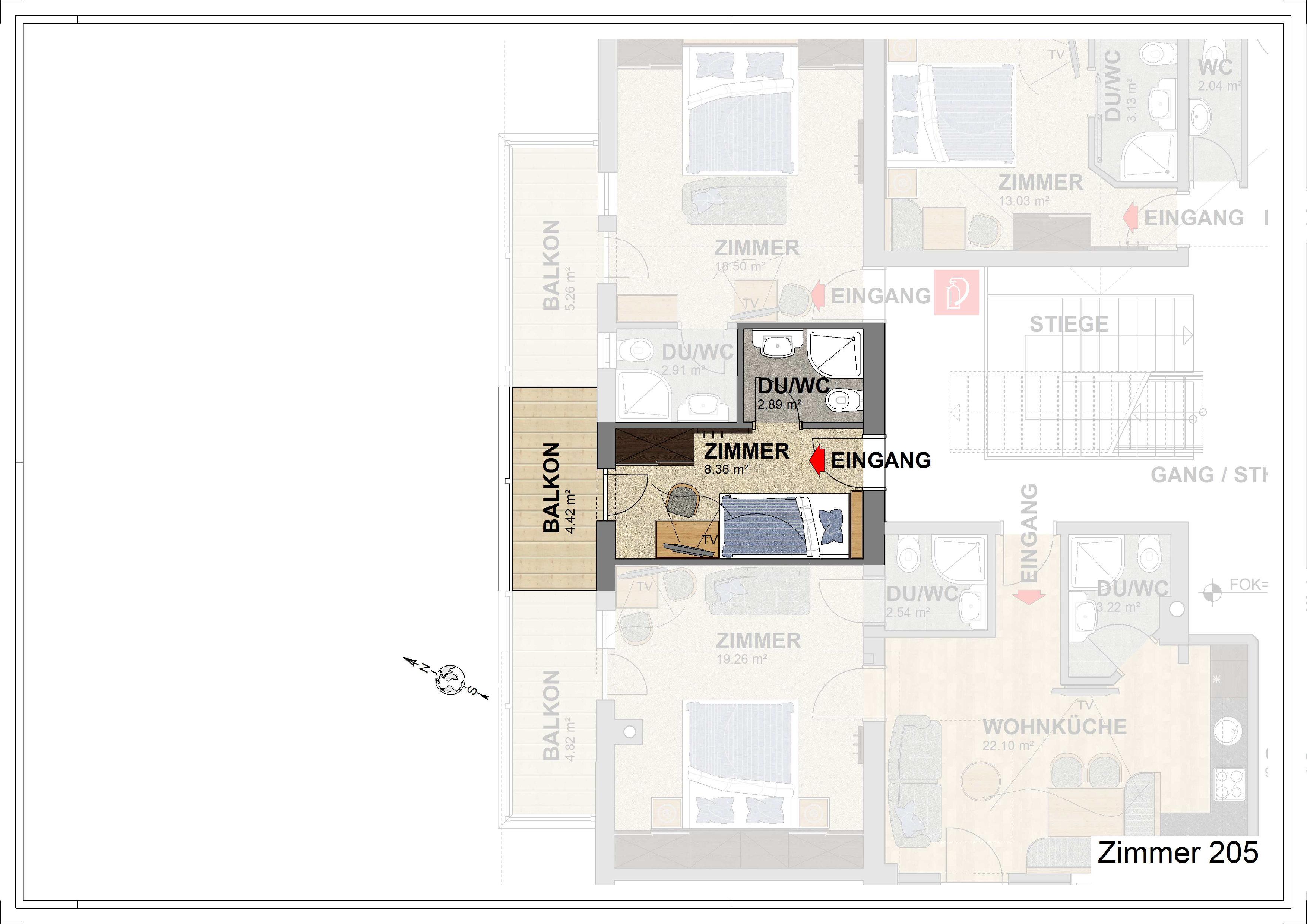 Gemütliches Einzelzimmer mit Sitzgelegenheit, Kabel-TV, Radio und Balkon. Badezimmer mit Dusche/WC, Haarföhn. Größe ca. 13 m²