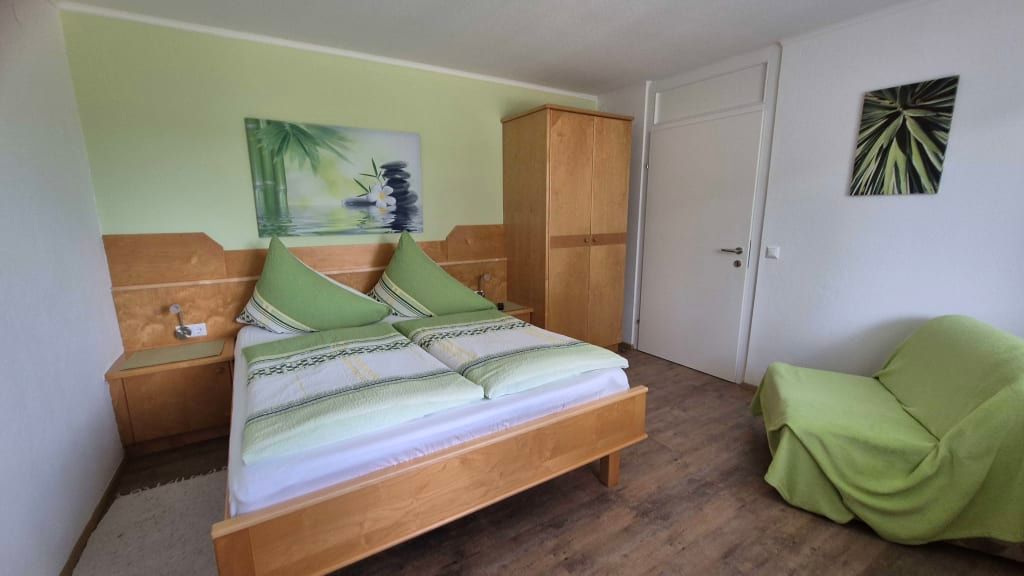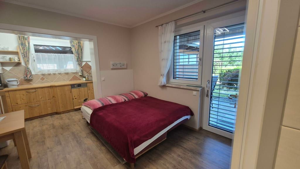 • Schlafzimmer mit Doppelbett und Auziehsofa