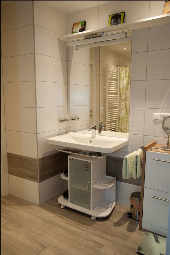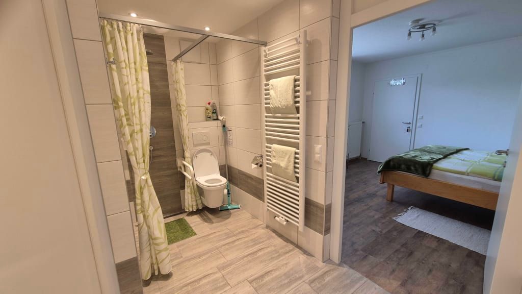 • großzügiges Badezimmer mit Dusche W/C auch für Rollstuhlfahrer geeignet