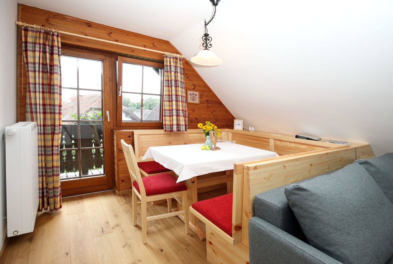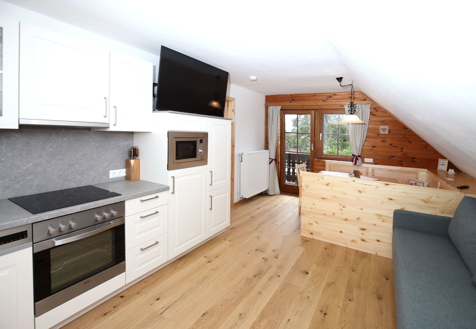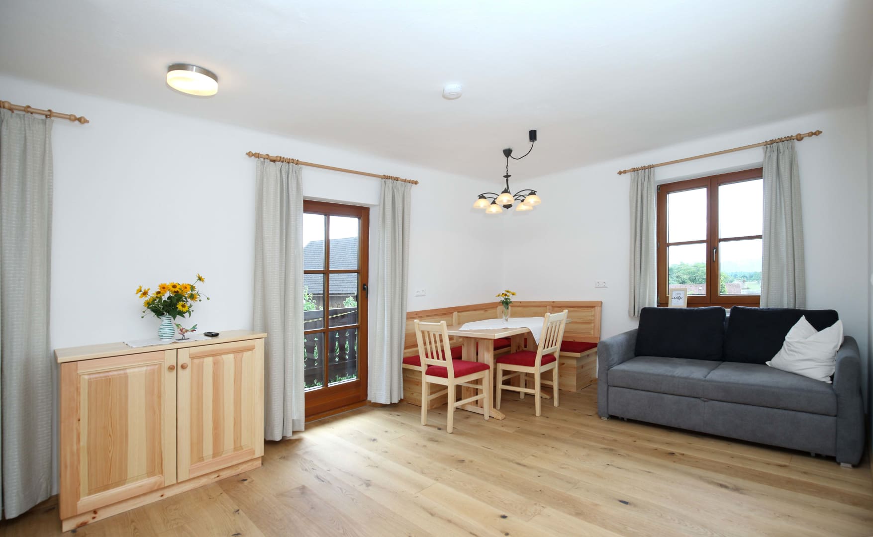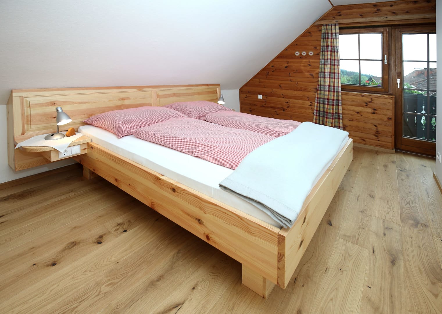 • mehr als 65 m² mit Vollholz-Einrichtung (Kiefer),