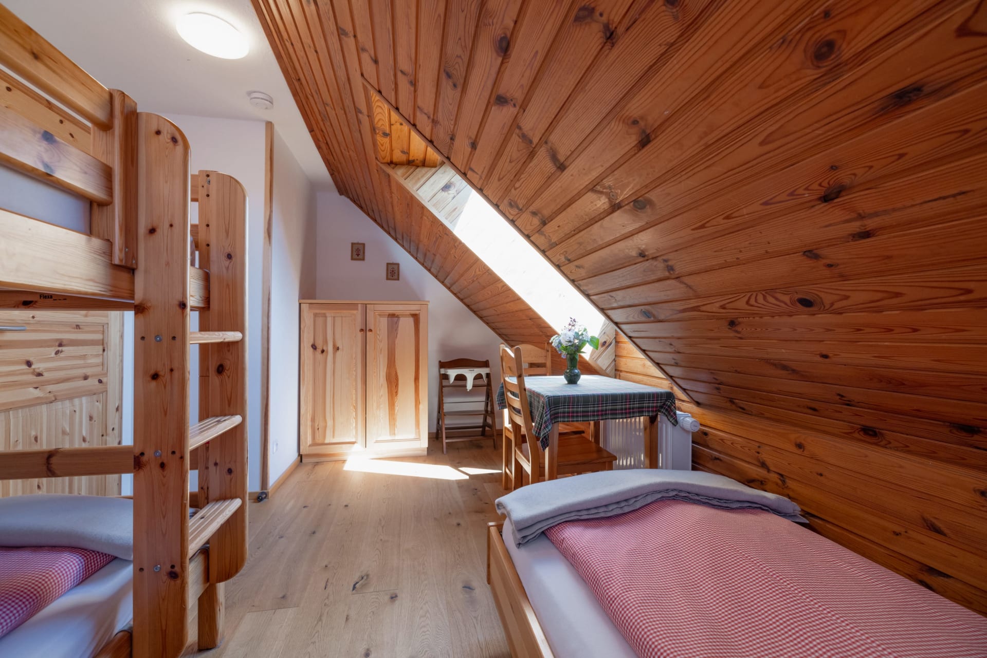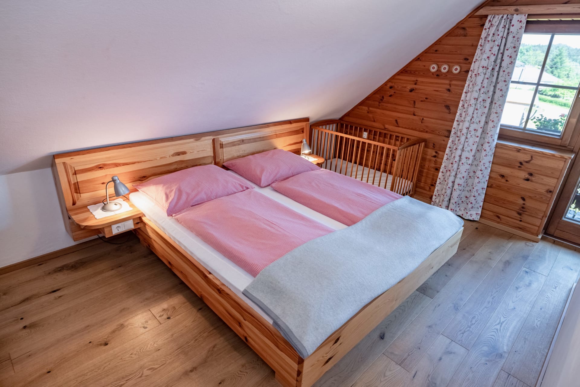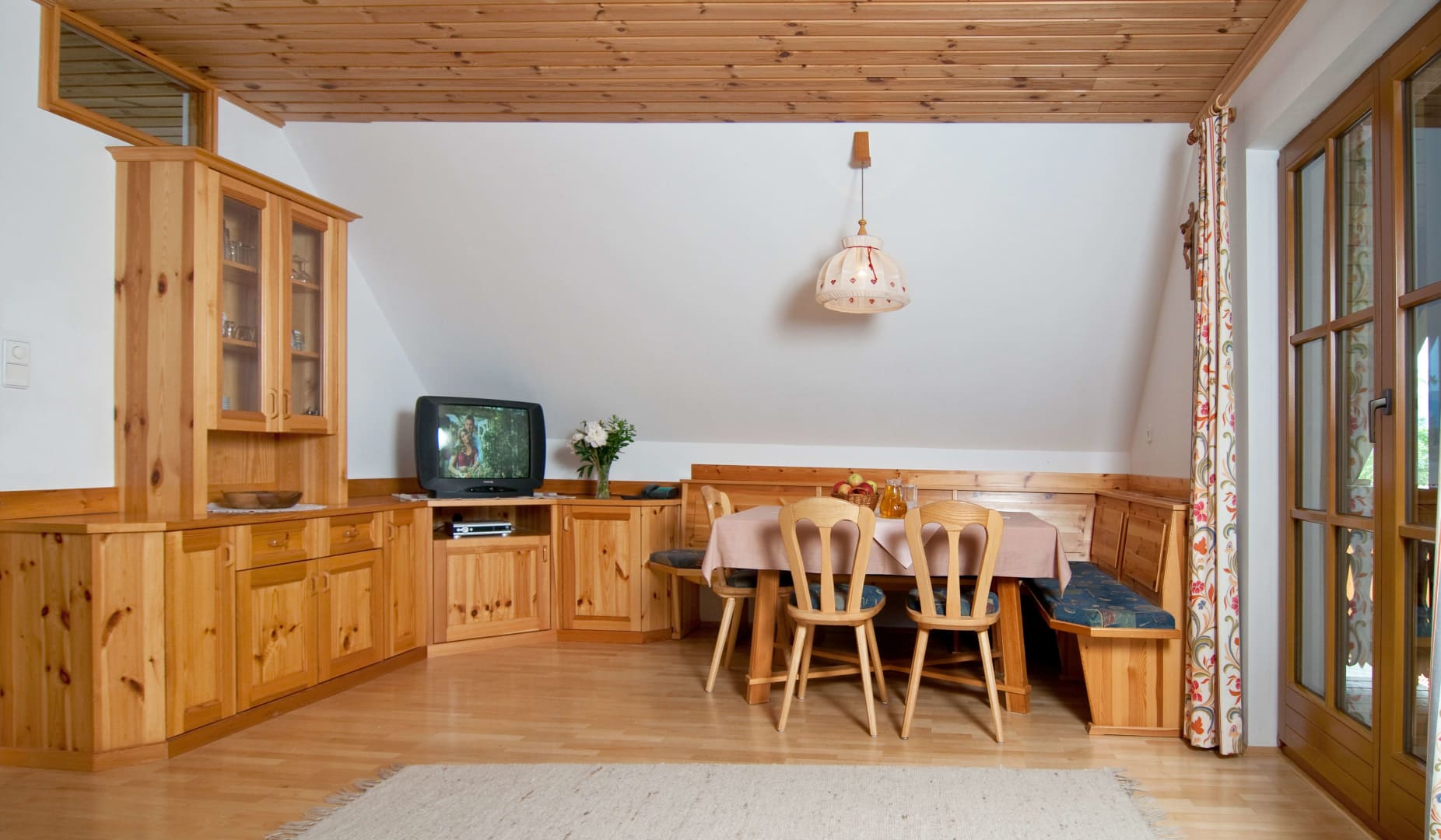• mehr als 65 m² mit Vollholz-Einrichtung (Kiefer),