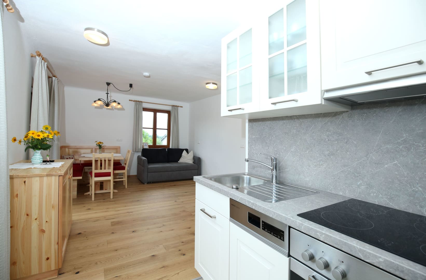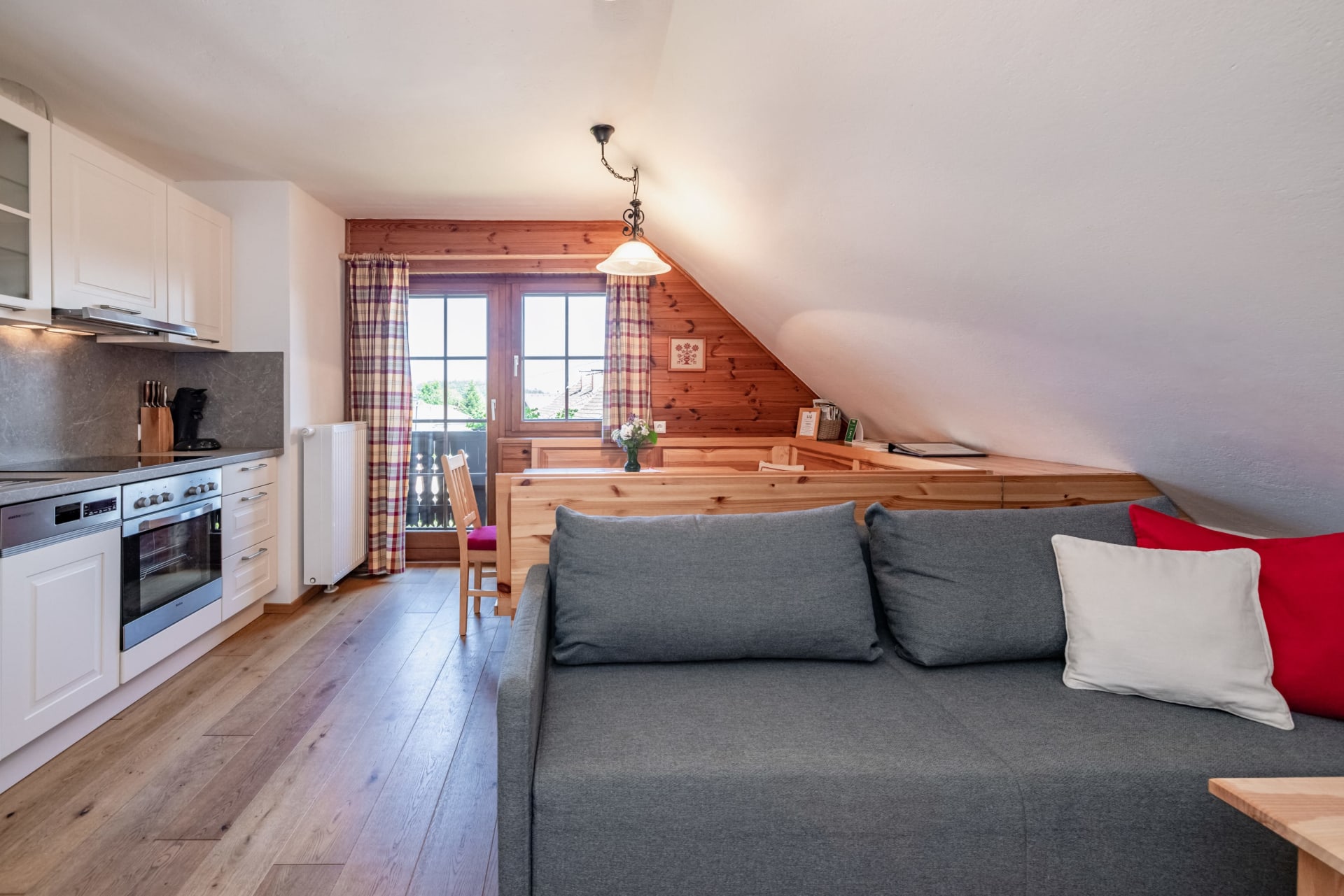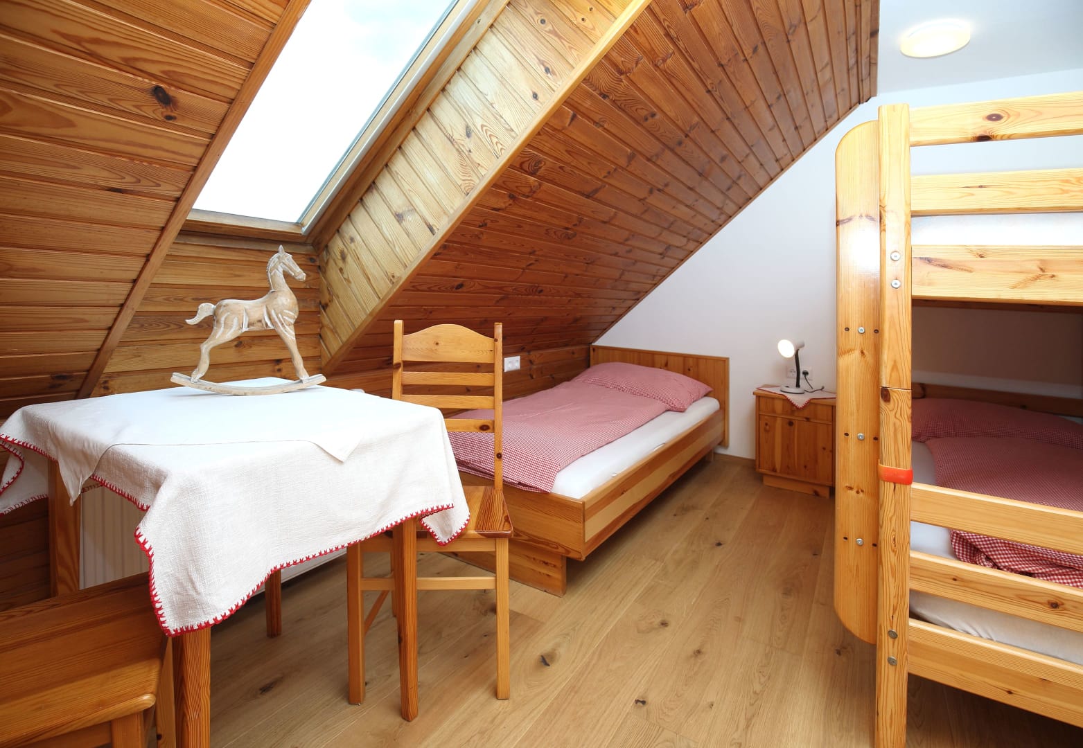 • mehr als 65 m² mit Vollholz-Einrichtung (Kiefer),